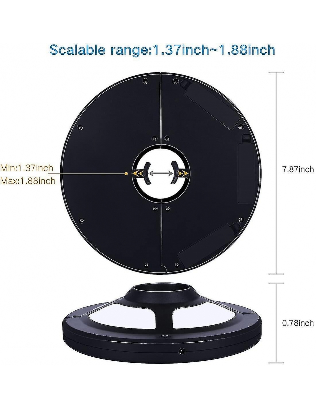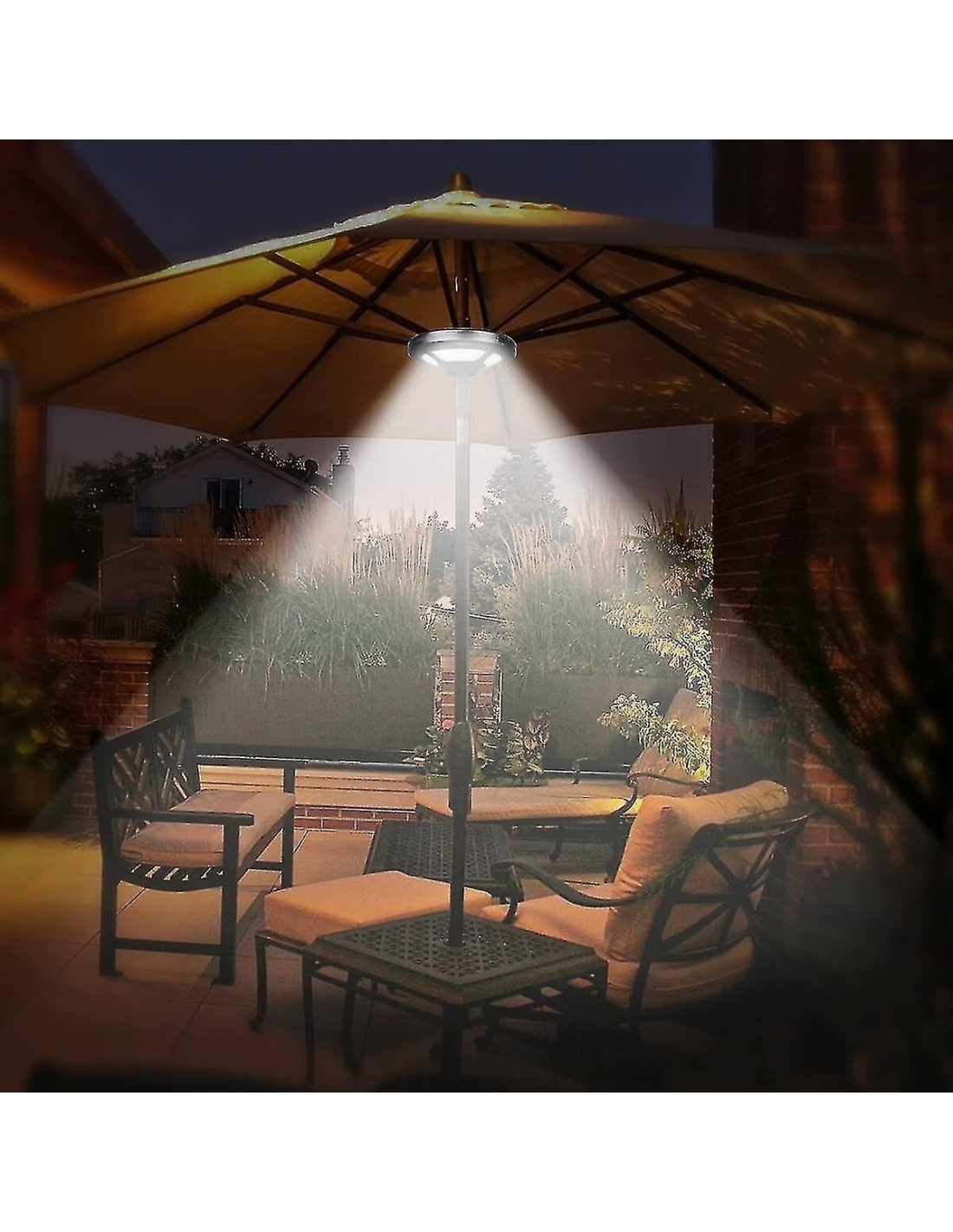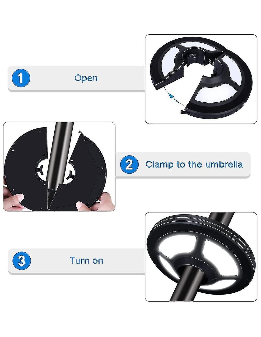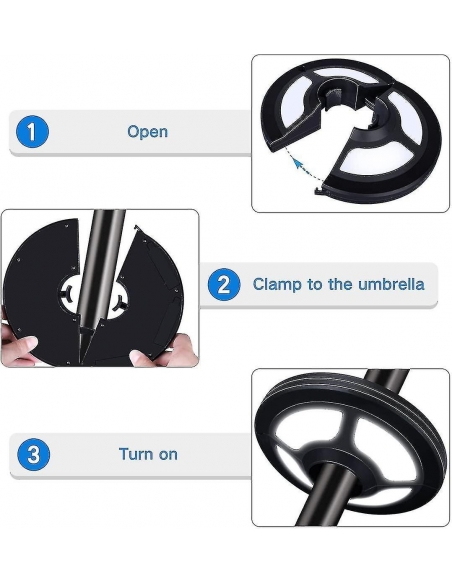 Non c'è bisogno di strumenti aggiuntivi, facile da bloccare all'ombrello con il morsetto forte regolabile automaticamente incorporato, adatta le dimensioni del palo da 1,37 pollici a 1,88 pollici di diametro.
