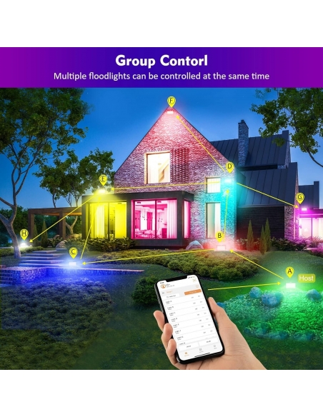 Scarica semplicemente l'APP "BRmesh" per controllare i proiettori entro 20 metri senza uscire di casa senza uscire di casa con gruppi personalizzati per il controllo di uno o più riflettori. Risolvi perfettamente il problema del facile malfunzionamento di due faretti telecomando a infrarossi adiacenti.