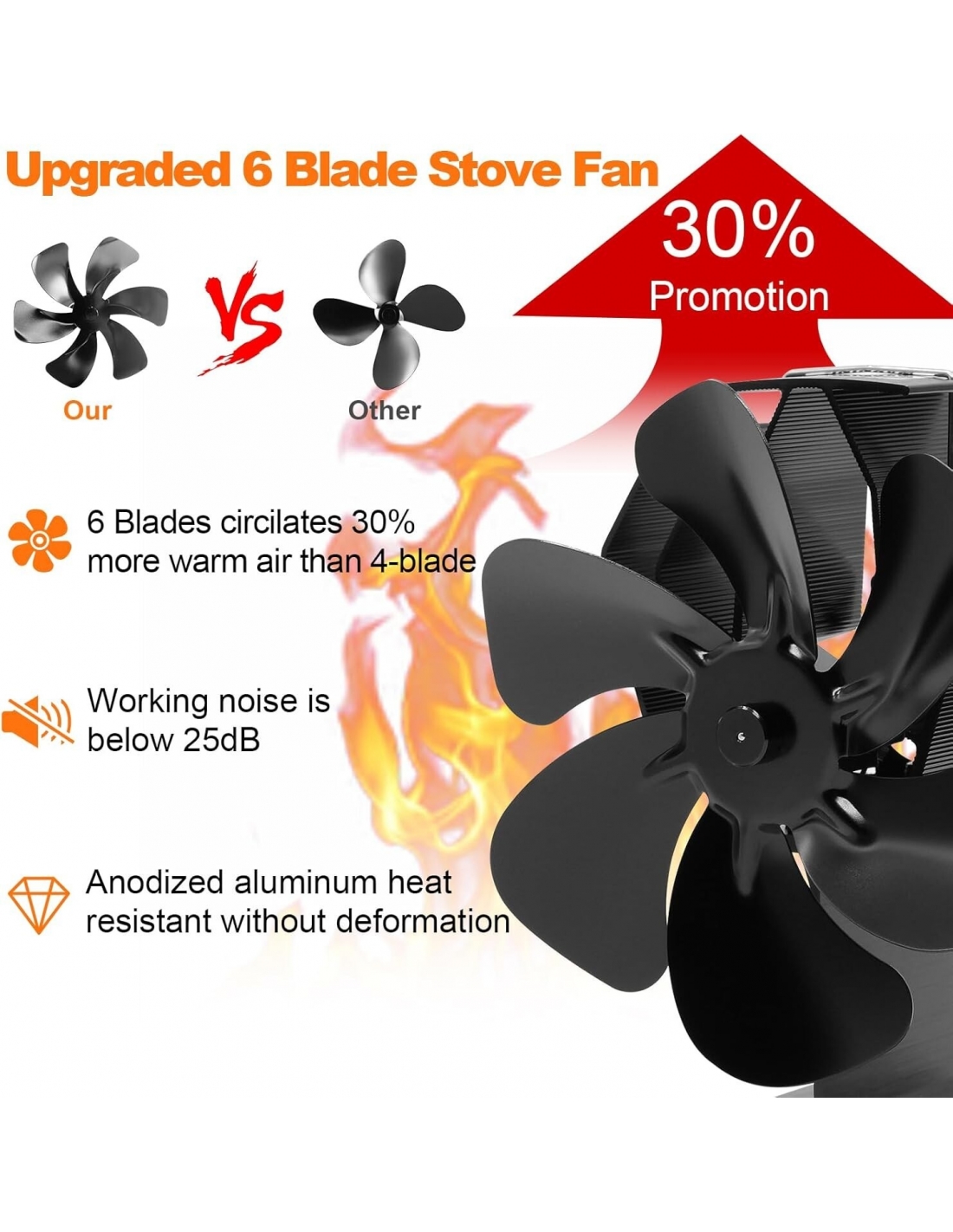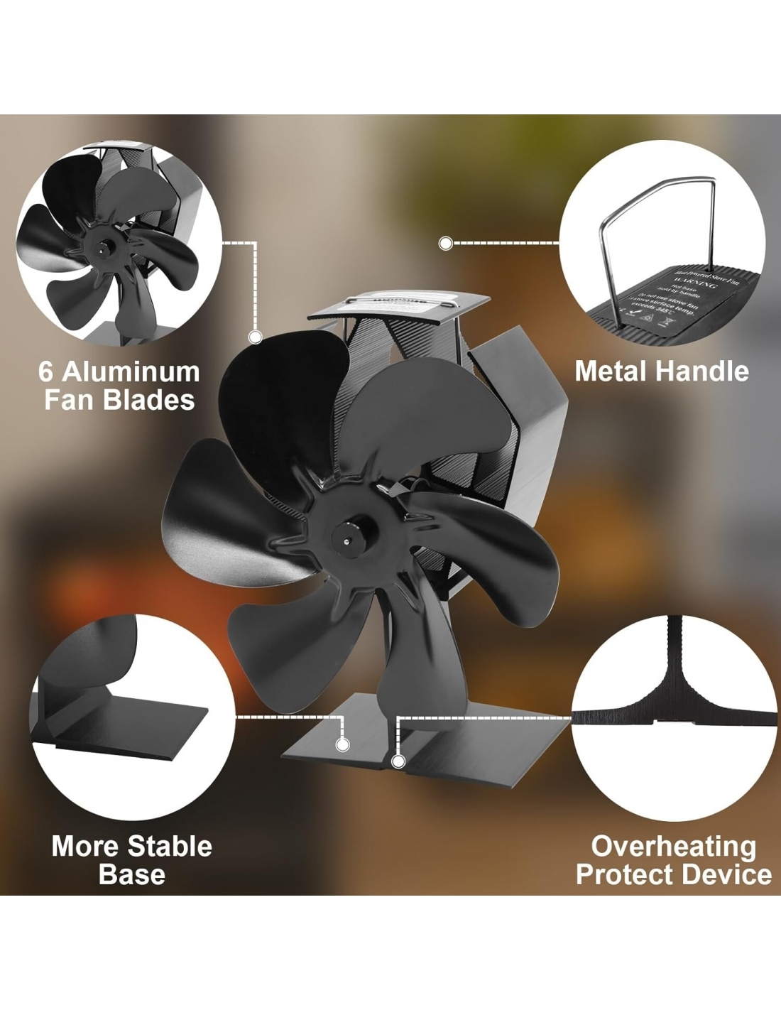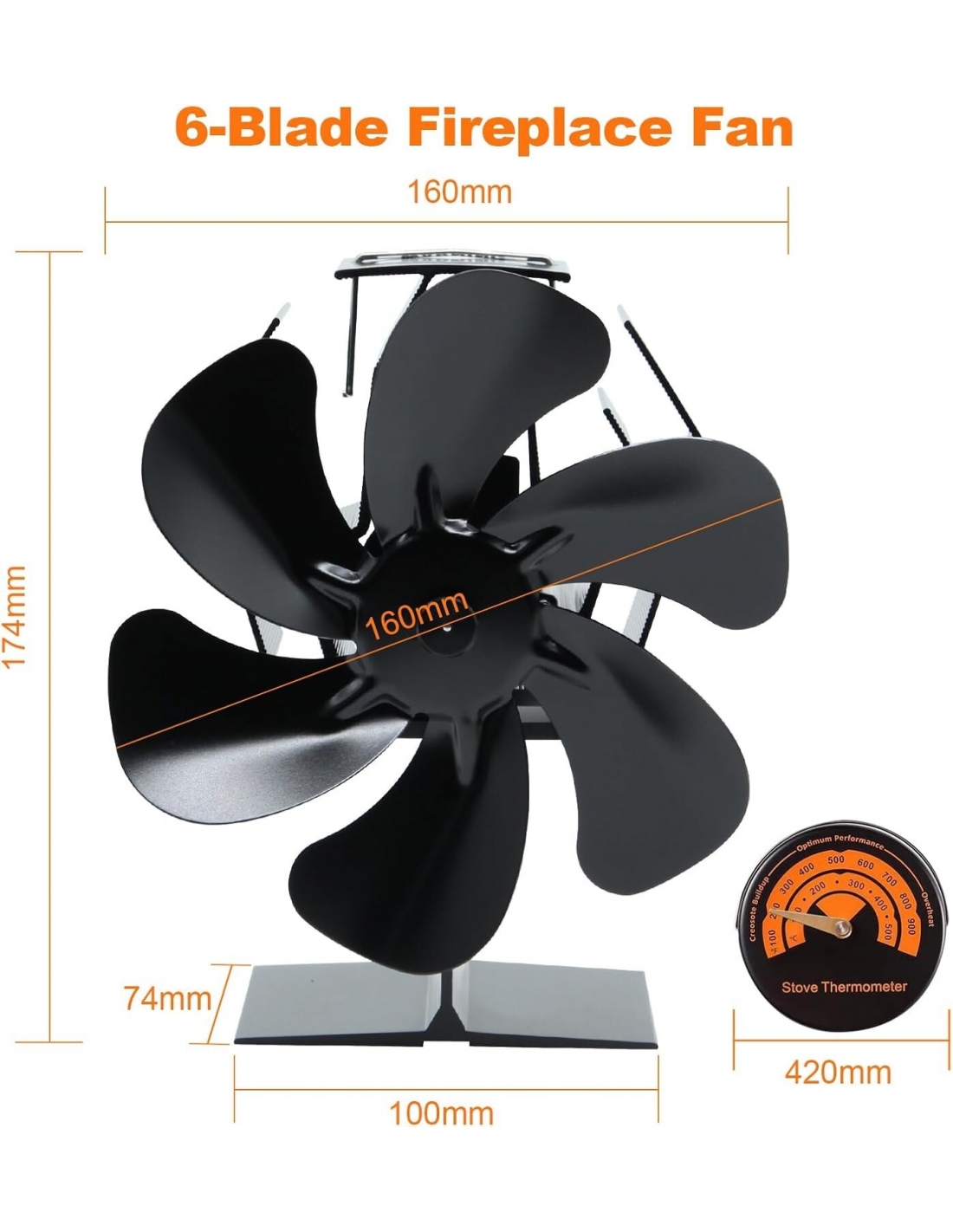 - A differenza dei tradizionali ventilatori per stufe a legna a 3/4/5 pale, il ventilatore per stufa a 6 pale migliorato con un design accurato e la nuova forma della ventola di convezione disperdono il calore più velocemente, generano più aria calda e aumentano la produttività. È incluso un termometro magnetico per monitorare la temperatura del forno. Il ventilatore per stufa a legna è ampiamente utilizzato per stufe a gas, elettriche e a legna.