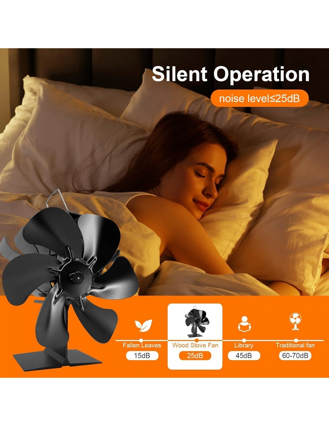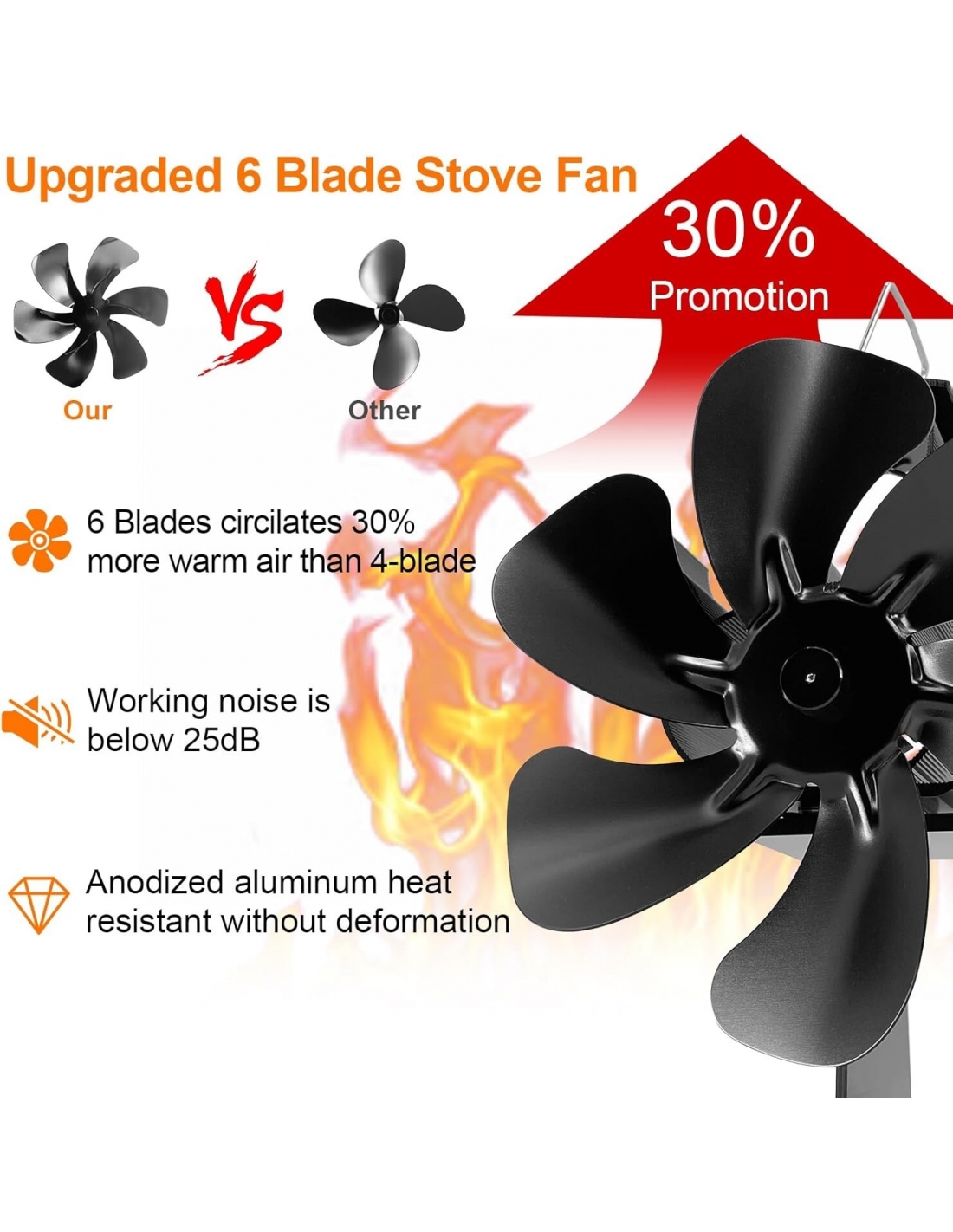 - Ventilatore per stufa silenzioso: il nuovo design a 6 pale non solo offre un volume d'aria maggiore, ma riduce anche il rumore, con un livello di disturbo inferiore a 25 dB. Potrete godervi l'aria calda in un ambiente silenzioso e confortevole. Può essere utilizzato come ventilatore per stufa a legna, a gas, elettrico o camino.