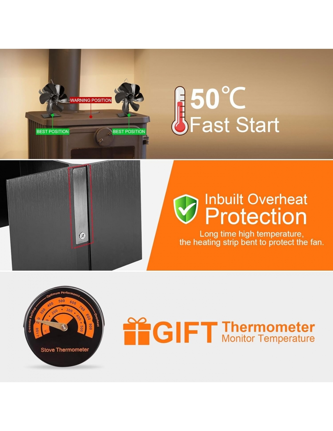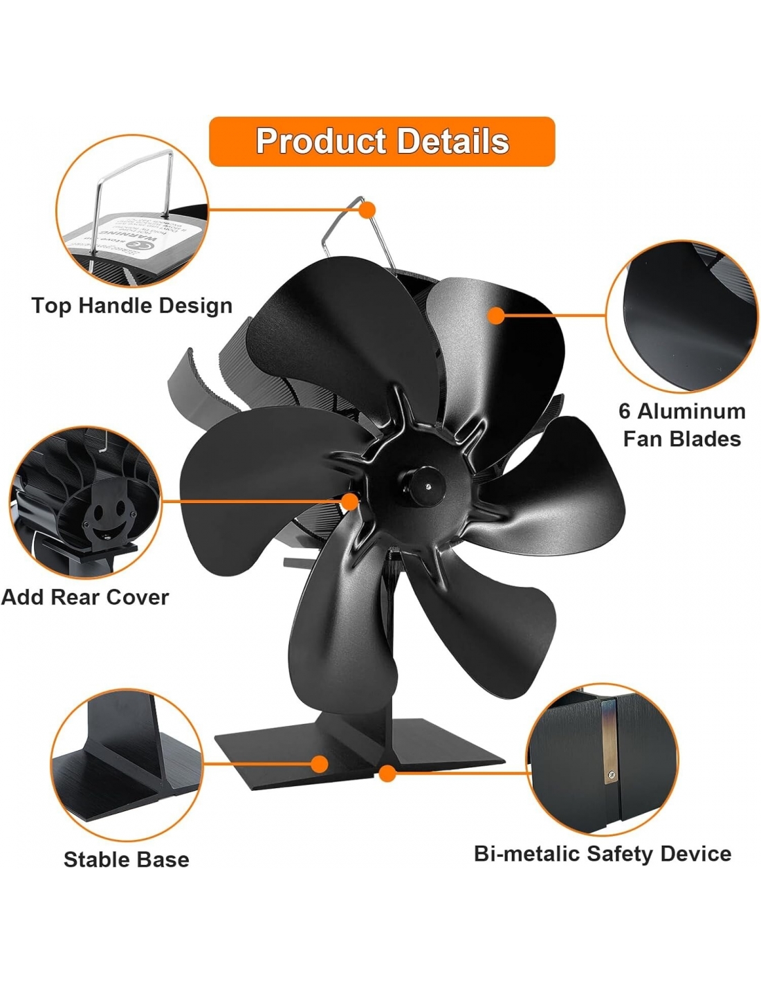 - Ventilatore per camino a 6 pale migliorato: diverso dai tradizionali ventilatori per stufe a legna a 3/4/5 pale, il ventilatore a 6 pale migliorato, con un design accurato e una nuova forma della ventola di convezione, diffonde il calore più velocemente, genera più aria calda e aumenta la produttività. È incluso un termometro magnetico per monitorare la temperatura del forno. Il ventilatore per stufe a legna è ampiamente utilizzato per stufe a gas, elettriche e a legna.