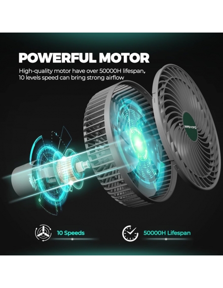 - Design innovativo: questo ventilatore a clip oscillante progettato appositamente per le tende da campeggio e presenta un design unico che si attacca ai pali della tenda per evitare scivolamenti. Con un flusso d'aria di 315 CFM, questo ventilatore è perfetto per tende di piccole e medie dimensioni.