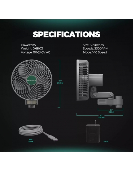 - Design innovativo: questo ventilatore a clip oscillante progettato appositamente per le tende da campeggio e presenta un design unico che si attacca ai pali della tenda per evitare scivolamenti. Con un flusso d'aria di 315 CFM, questo ventilatore è perfetto per tende di piccole e medie dimensioni.