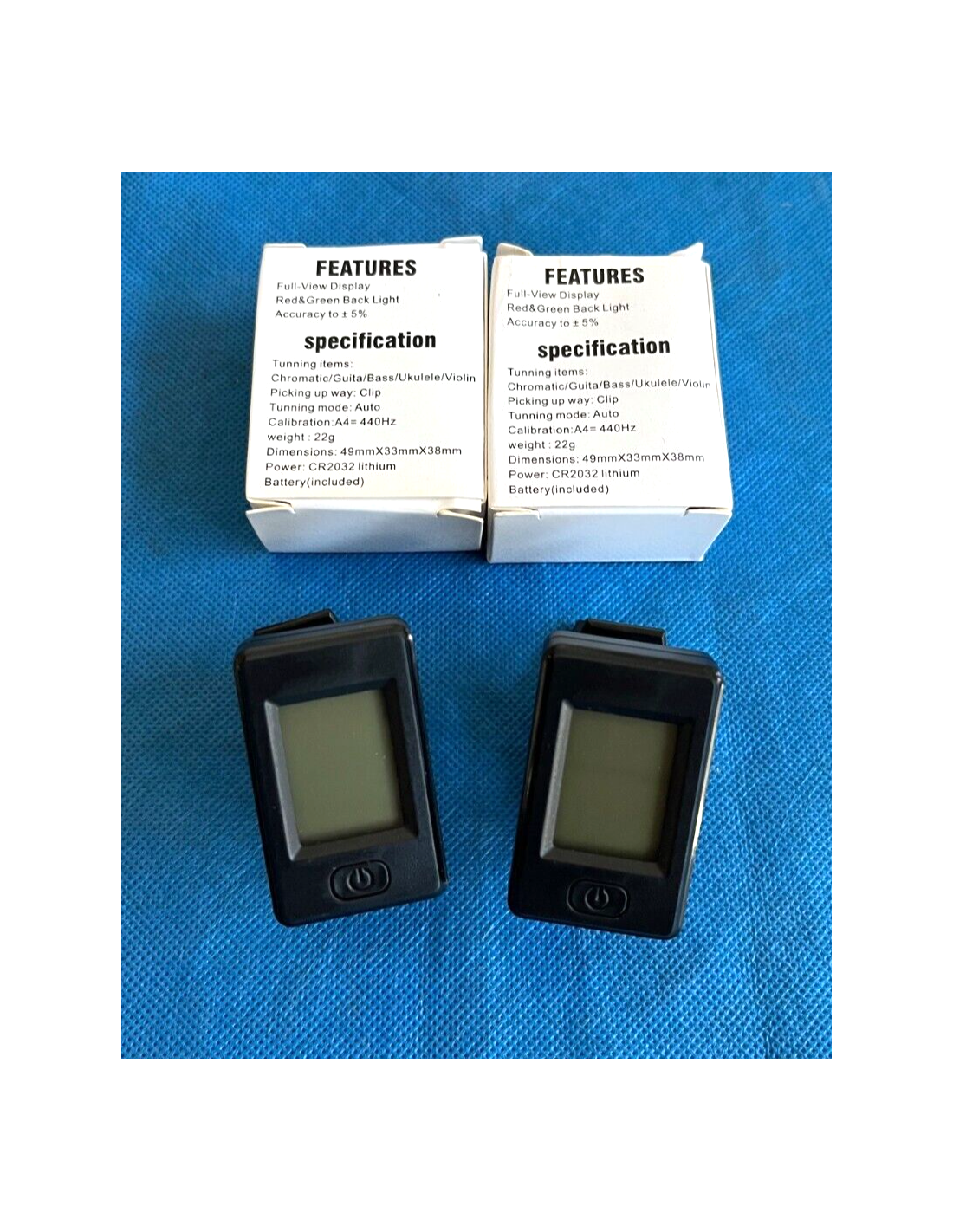2 x GBU Clip Tuner Accordatore Cromatico x Chitarra Basso Ukulele Violino, Nero