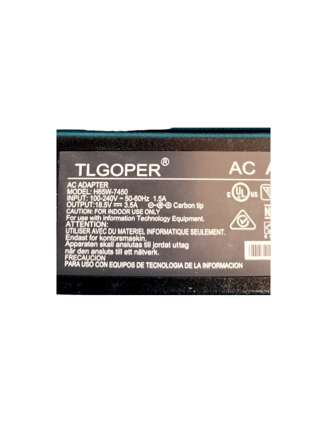 - Uscita: 18.5V, 1.5A, 65W, dimensione del connettore: 7.4mm * 5.0mm. Questo caricatore universale per laptop può sostituire la maggior parte dei laptop HP 65W (l'interfaccia del connettore del modello universale deve essere 7.4mm*5.0mm).