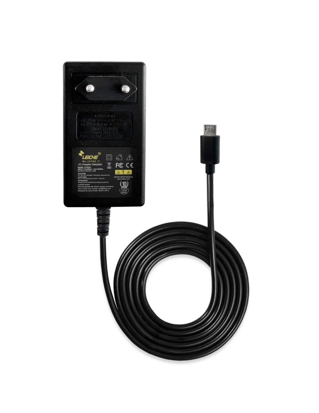 Alimentatore LEICKE Adattatore di corrente alternata - Potenza 15W | 5V, 3A - Dimensioni Spinotto: Micro USB | Compatibile con Smartphones, Tablets, MP3 Player, Raspberry Pi ed altri accessori.