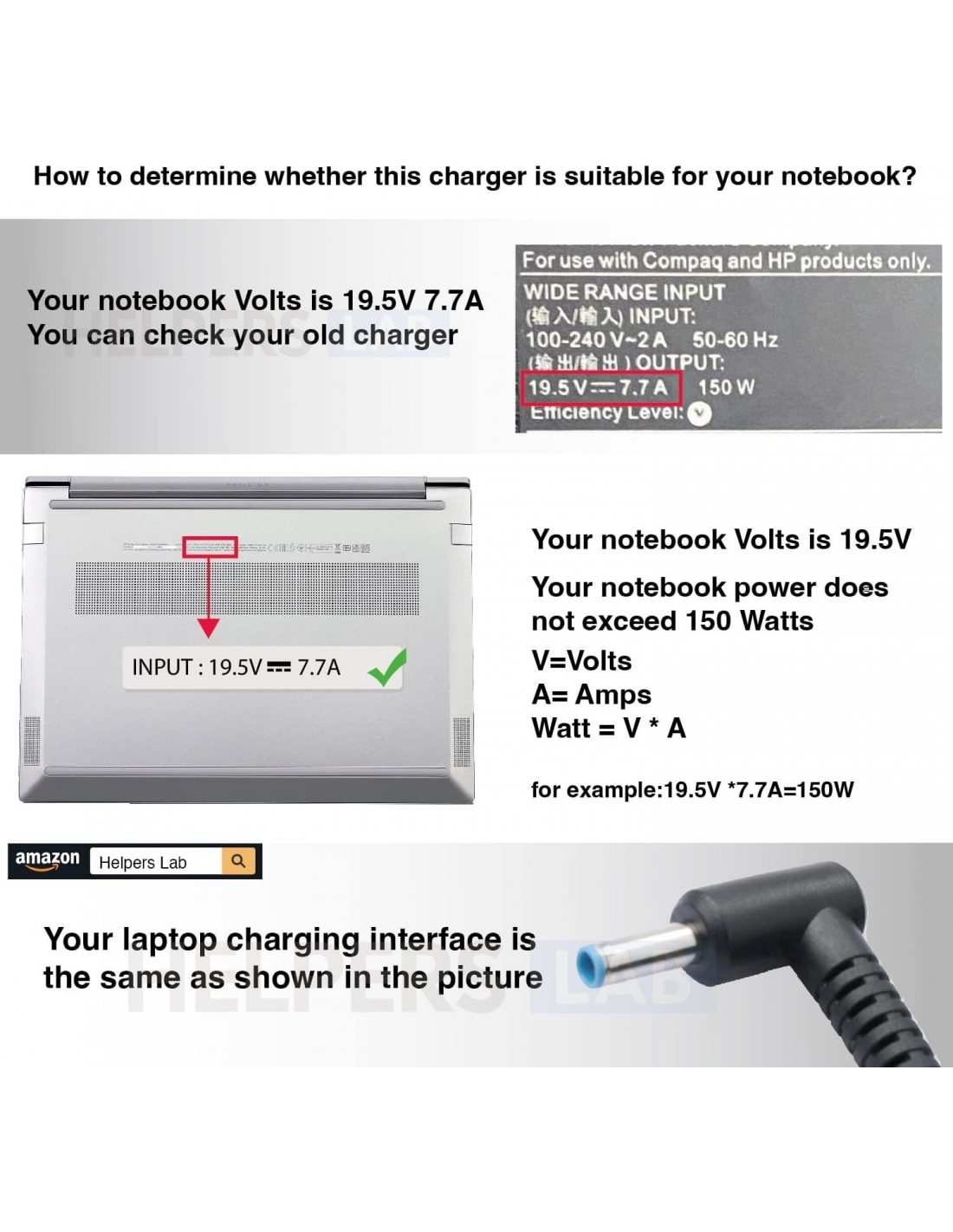 - Caricabatterie adattatore per 917649-850, 917677-003,776620-001,775626-003,645509-002, 646212-001, ADP-150XB B, A150A05AL, HSTNN-CA27, TPN-DA03, TPN-DA09, W2F74AA, W2F74UT#ABA, Z5U90AV, 3MD65AV, Y1F28AV