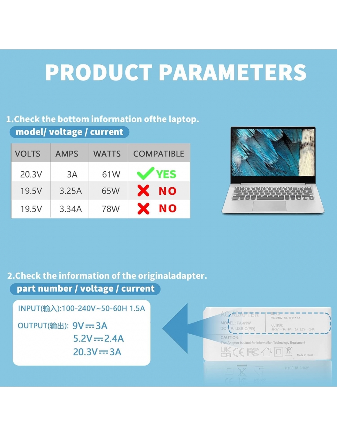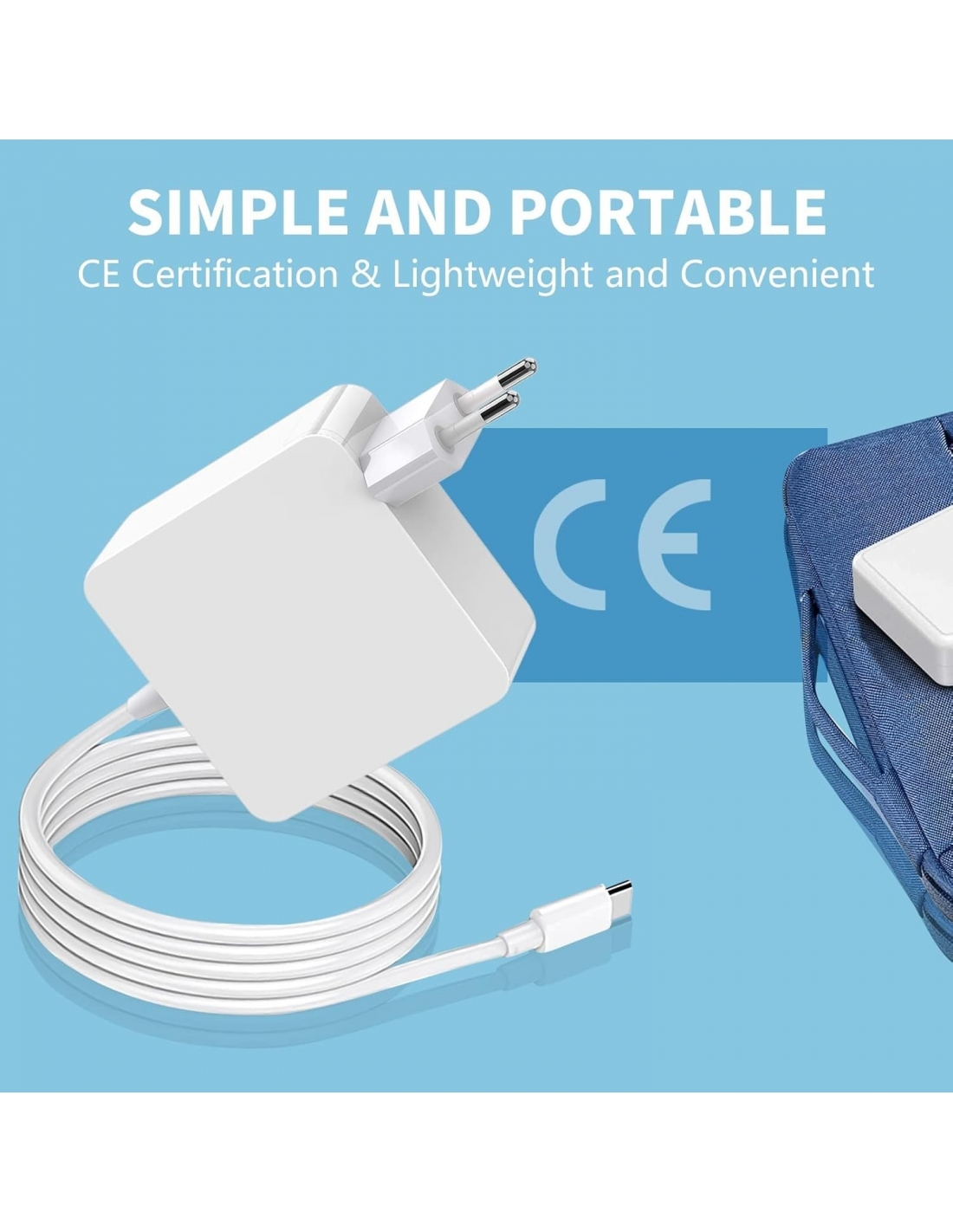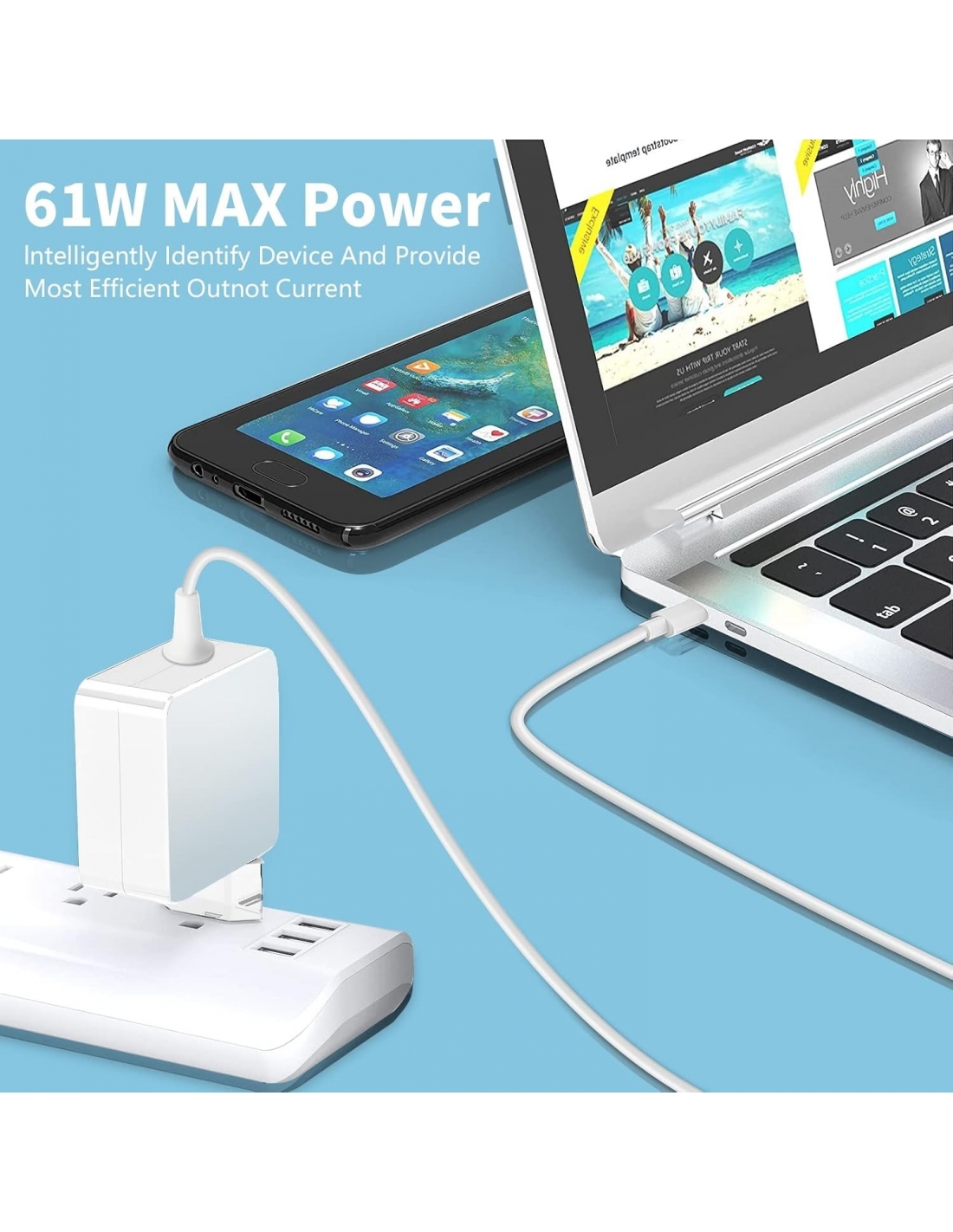 Cavo di ricarica per NoteBook Pro, 61 W, USB-C Power Adapter da 61 W, per MacBook Pro 13 pollici, 2021, 2020, 2019, 2018, 2017, 2016, MacBook Air 13/12 pollici, M1, Mac Book USB C