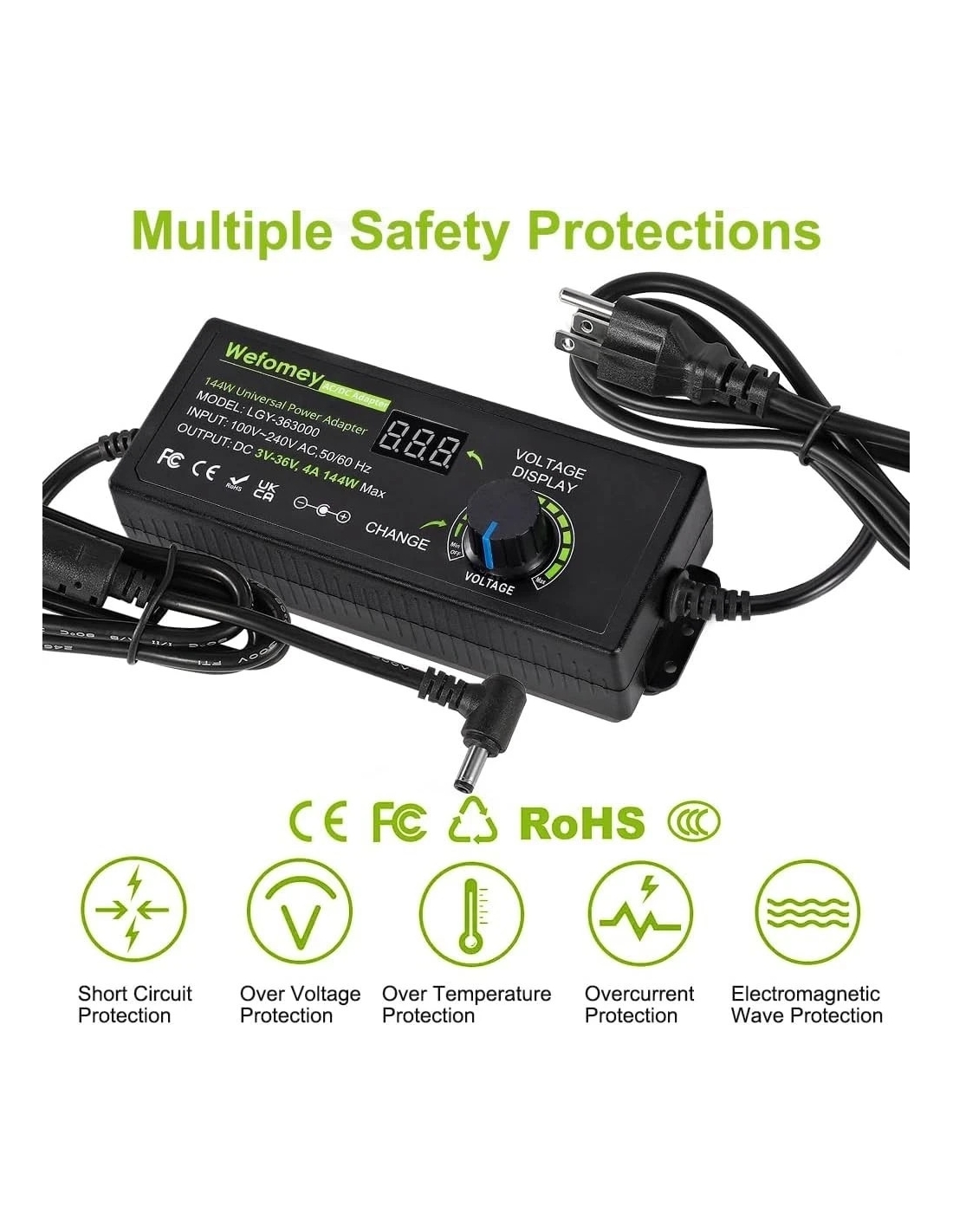 Wefomey LGY-363000 Alimentatore Universale 3-36V 4A DC Adattatore Regolatore di Tensione CE FCC