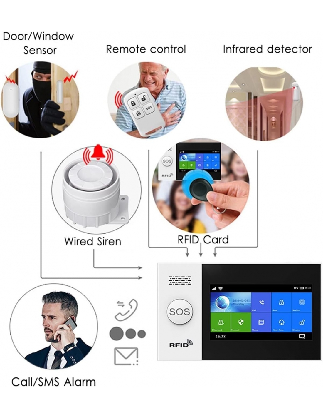 Tuya PG-107 Kit Allarme Casa, Wireless Home Wifi GSM Sicurezza domestica