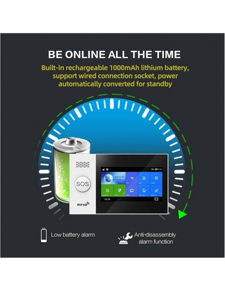 Supporto per batteria al litio da 1000 mAh ricaricabile incorporato Assistenza cablata Connessione Convertita automaticamente in standby allo stesso tempo ha anche le funzioni di ricordo a bassa potenza e antidisassembly. Doppio garanzia, renderti più a tuo agio.