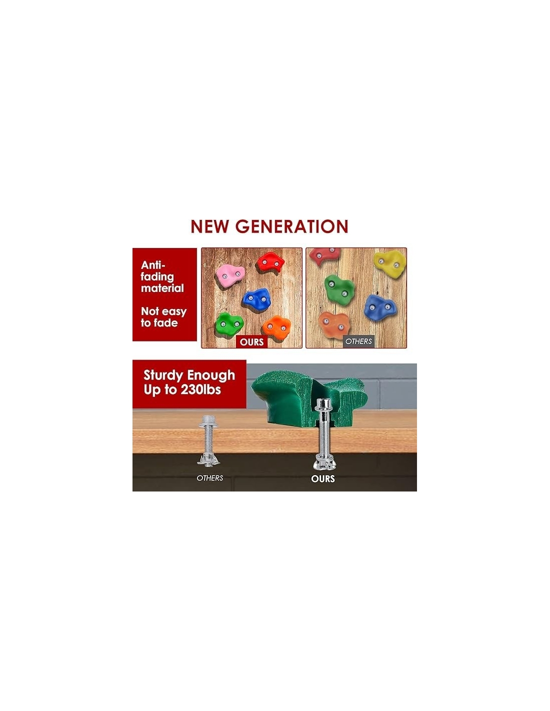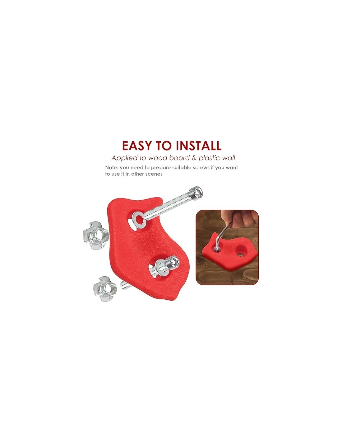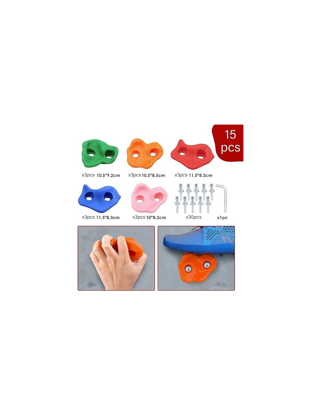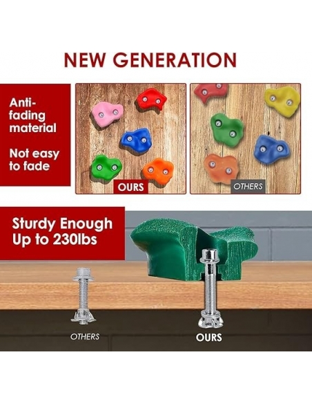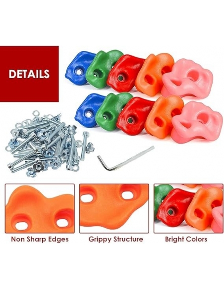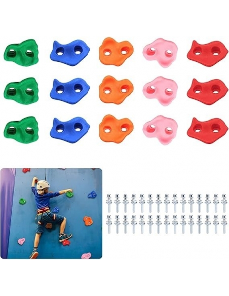- 🧗♂️【Materiale di qualità】l'arrampicata è realizzata in materiale sintetico, sicura e affidabile e ultravioletta per il corpo umano senza alcun effetto velenoso. La resistenza alla prese per arrampicata è alta, buona resistenza all'usura, sensazione comoda, non ha paura della pioggia soleggiata, non svanisce. La in pietra rampicante non ha acuto, rotondo, adatto per le mani dei bambini sensibili, i bambini possono più facilmente afferrare e tirare su. Rock rampicante può indossare 65kg
