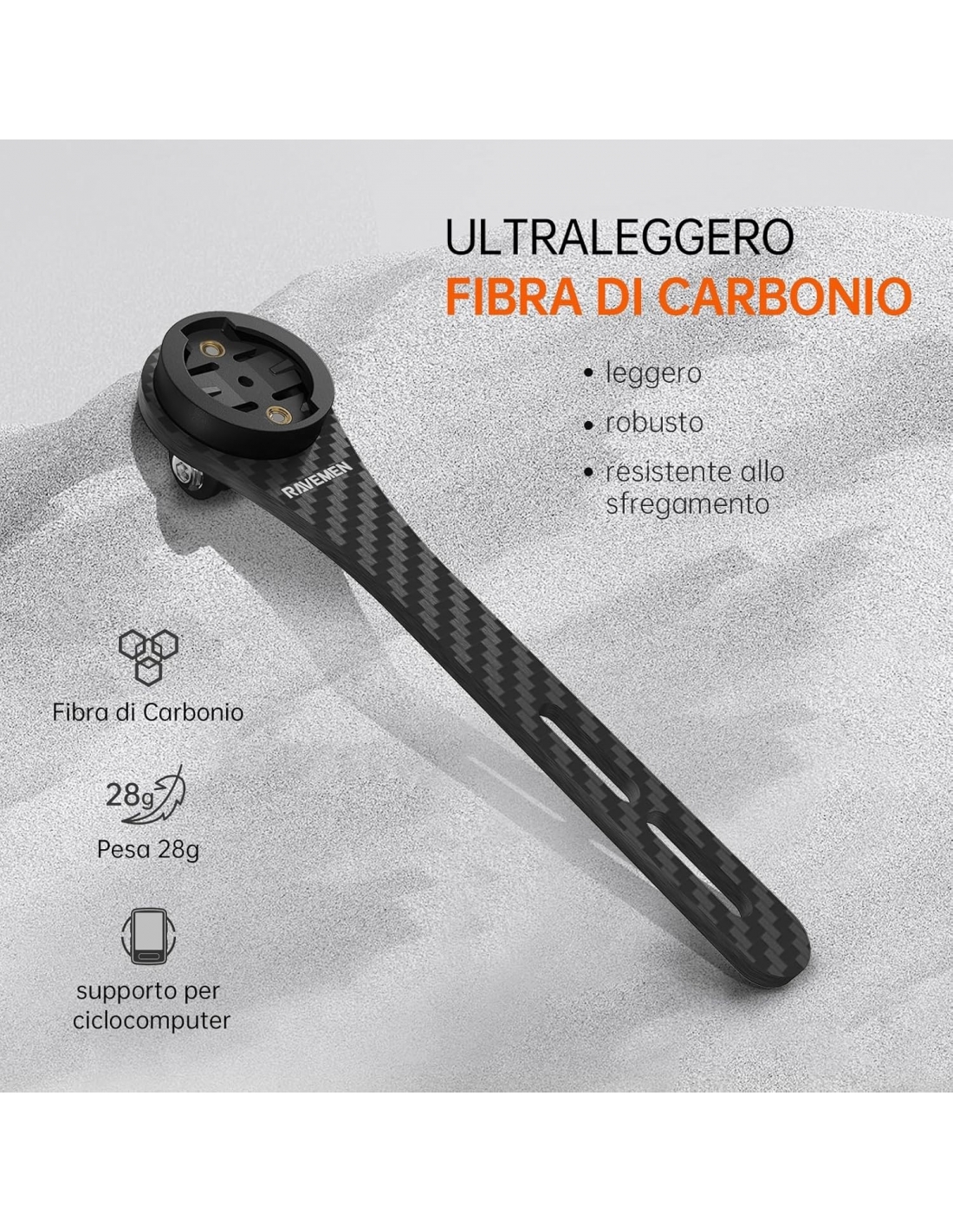 - 【FIBRA DI CARBONIO ULTRALEGGERA 28G】Più leggero e resistente, durevole e non facile da rompere, può facilmente affrontare tutti i tipi di maltempo. Il supporto per manubrio integrato consente di montare facilmente il dispositivo sul manubrio e di tenerlo in ordine, rendendolo perfetto per la guida su strada, in città e per gli spostamenti quotidiani.