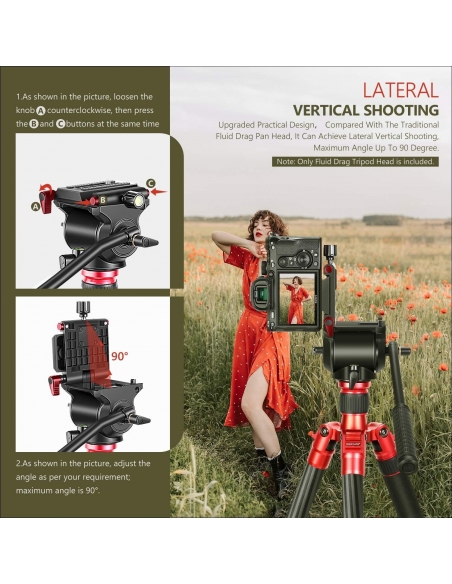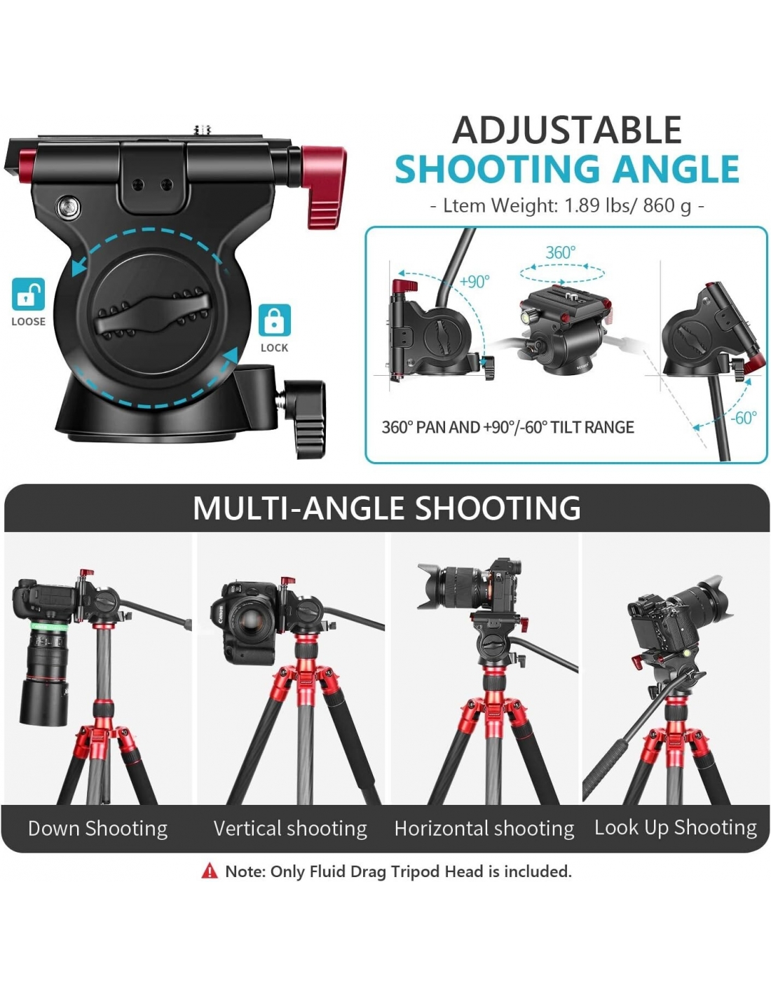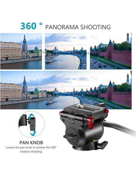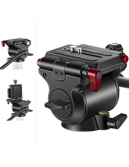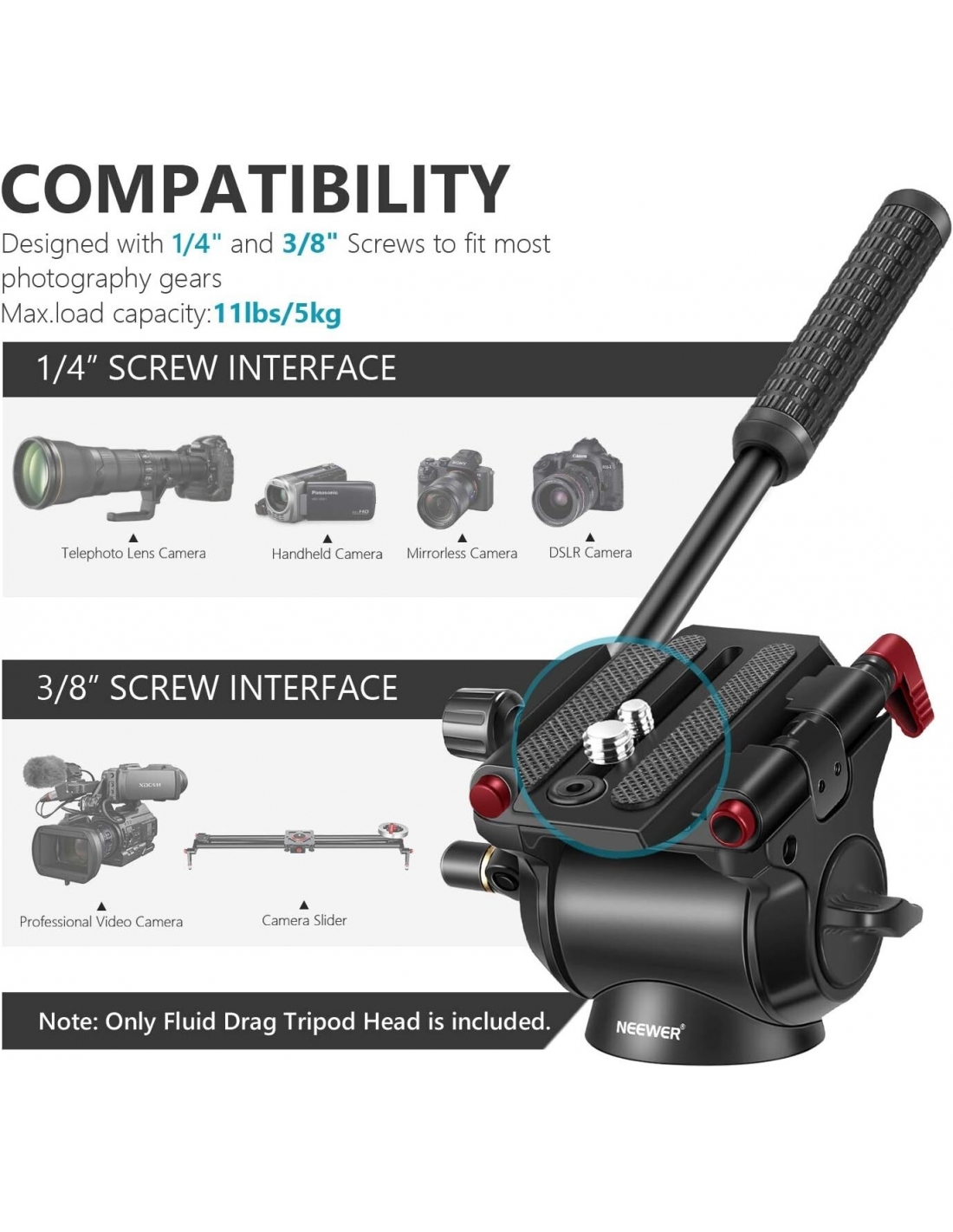 Neewer Testa Orientabile Fluida Aggiornata Resistente con Viti 1/4” e 3/8”Piastra Scorrevole per Reflex Digitali Videocamere da Massimo 5kg in Lega di Alluminio