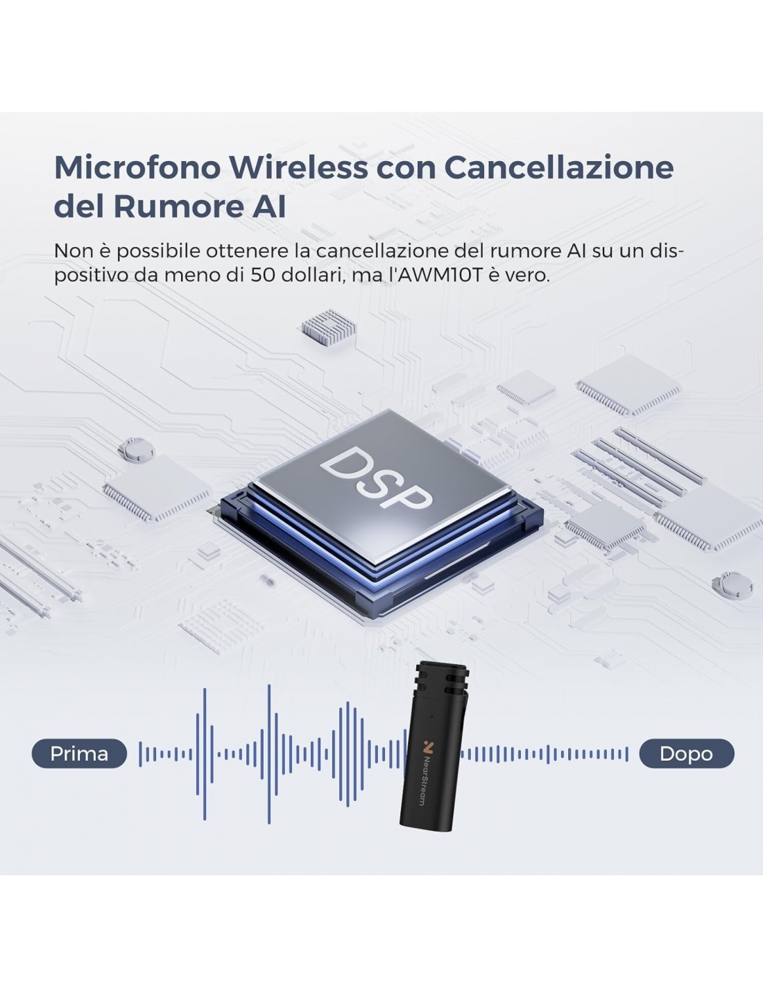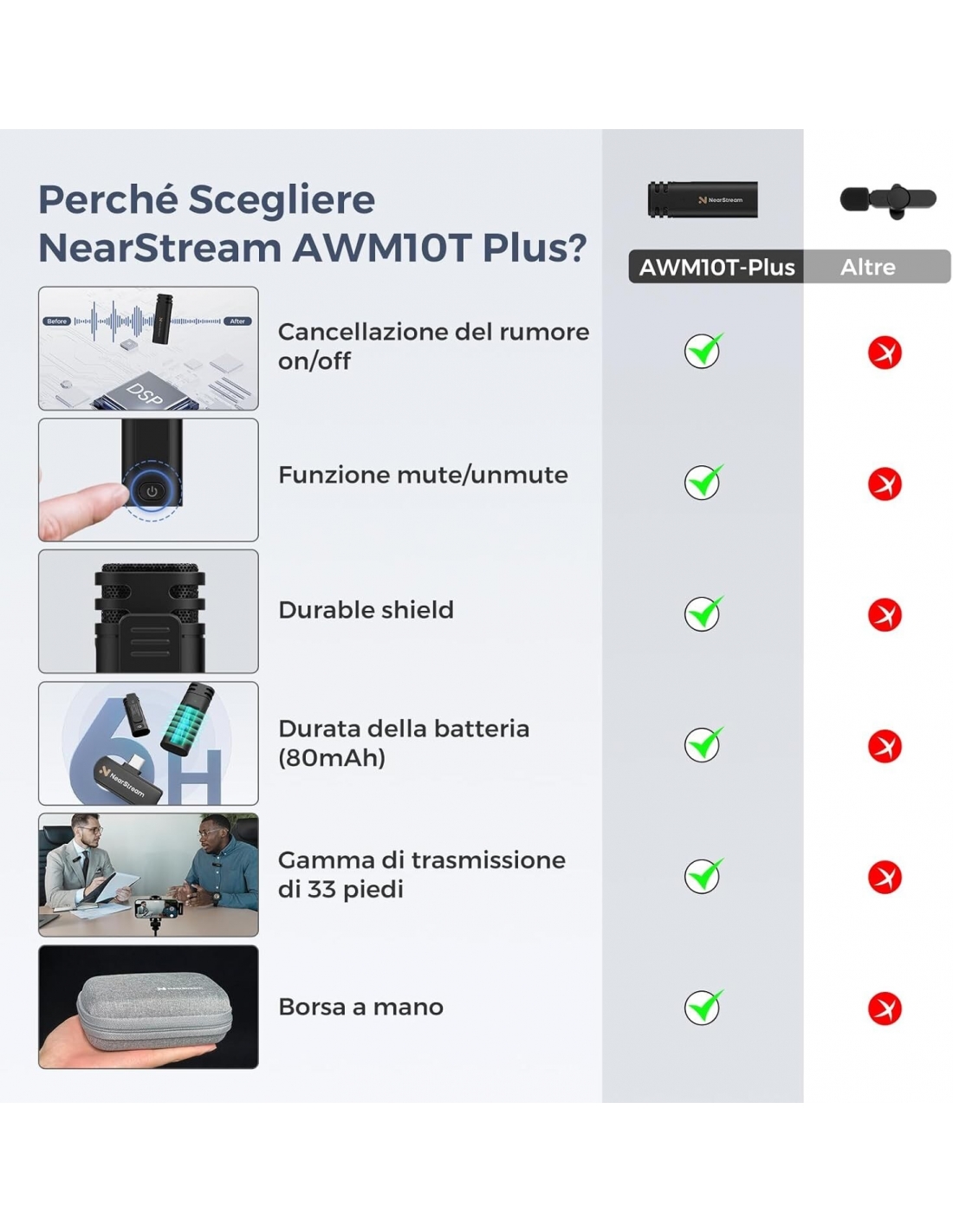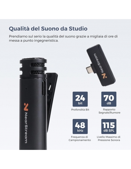 NearStream AWM10T Microfono Mini Lavalier Wireless Smartphone Type-C Lightining.
