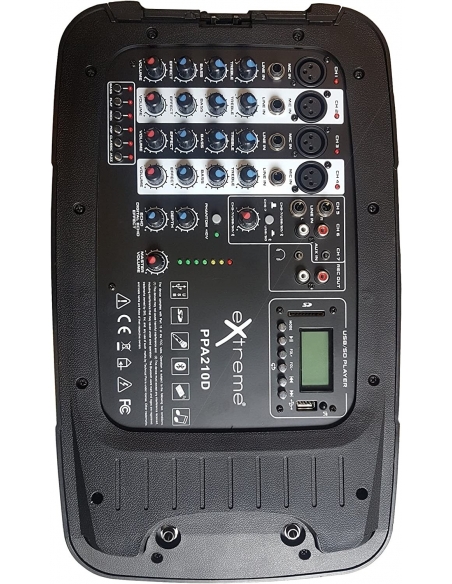 EXTREME PPA210D COMBO CASSE E MIXER 4 IN XLR 2 STEREO JACK + PLAYER BLUETOOTH USB SD+ MICROFONO + CAVI