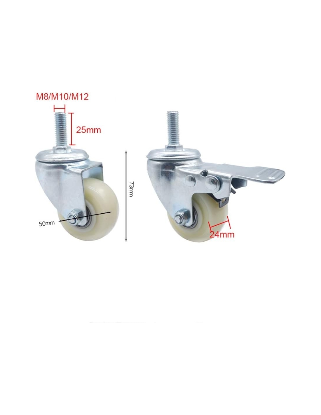 TIANHEY Ruote girevoli Leggere e pratiche 4X con Freno Ruota piroettante in Nylon da 50 mm M8/M10/M12 Carrello per mobili Ruote girevoli universali capacità di carico 240 kg