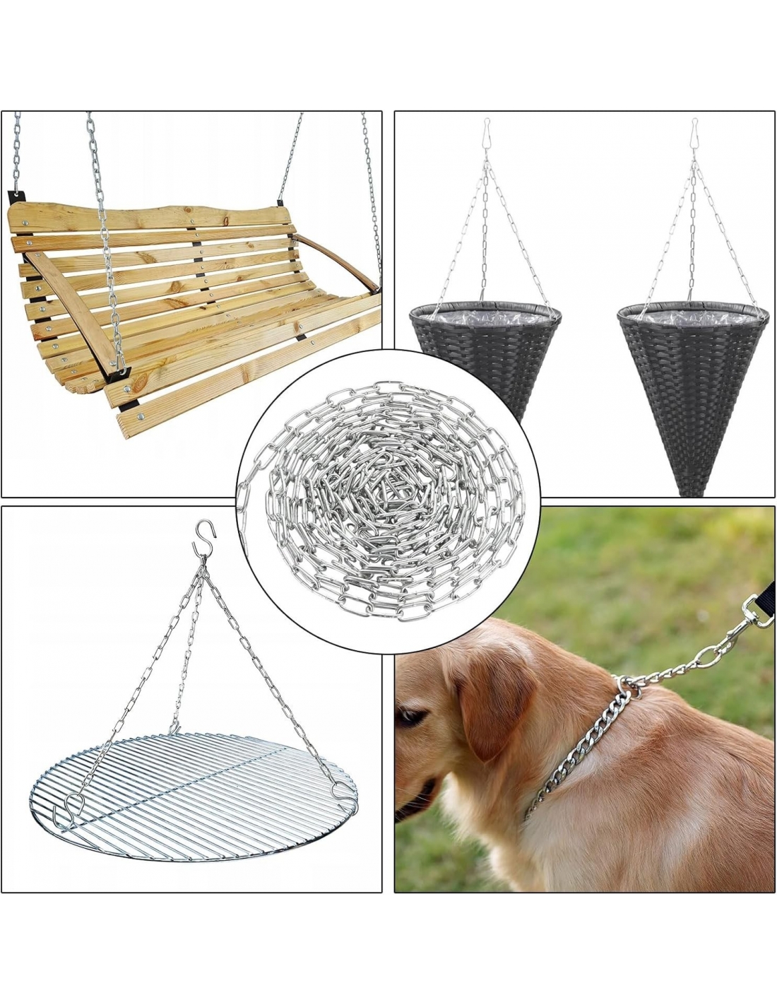 - ✔️【Ampia applicazione】- La catena in acciaio per impieghi gravosi può essere utilizzata per altalene, stendere i vestiti, lampadari, piante in vaso, cancelli di sicurezza, porte da garage, recinzioni da giardino, lucchetti per biciclette, passeggiate per cani, decorazioni fai da te, ecc.