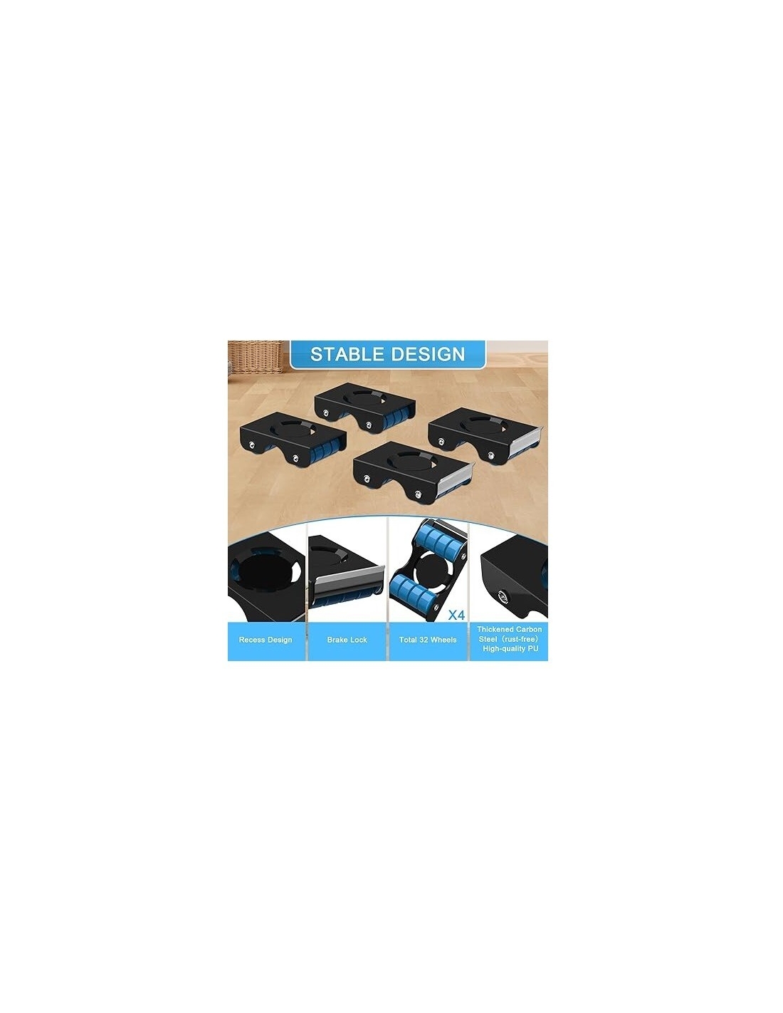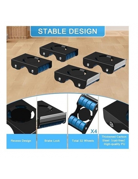- [Set Sposta Mobili Rotelle] Il nostro sollevatore di mobili comprende 4 carrelli in acciaio al carbonio con 8 ruote ciascuno, 1 pezzo di barra di sollevamento e 4 pezzi di tappetini in gomma antiscivolo. Leggero e comodo da usare. Questo trasloco sollevatore può spostare mobili pesanti fino a 350 kg.