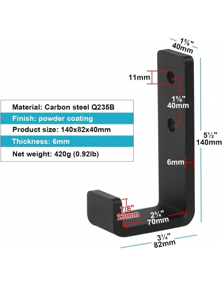 - Altezza: 140 mm | Lunghezza: 82 mm | Larghezza: 40 mm | Spessore (spessore): 6 mm