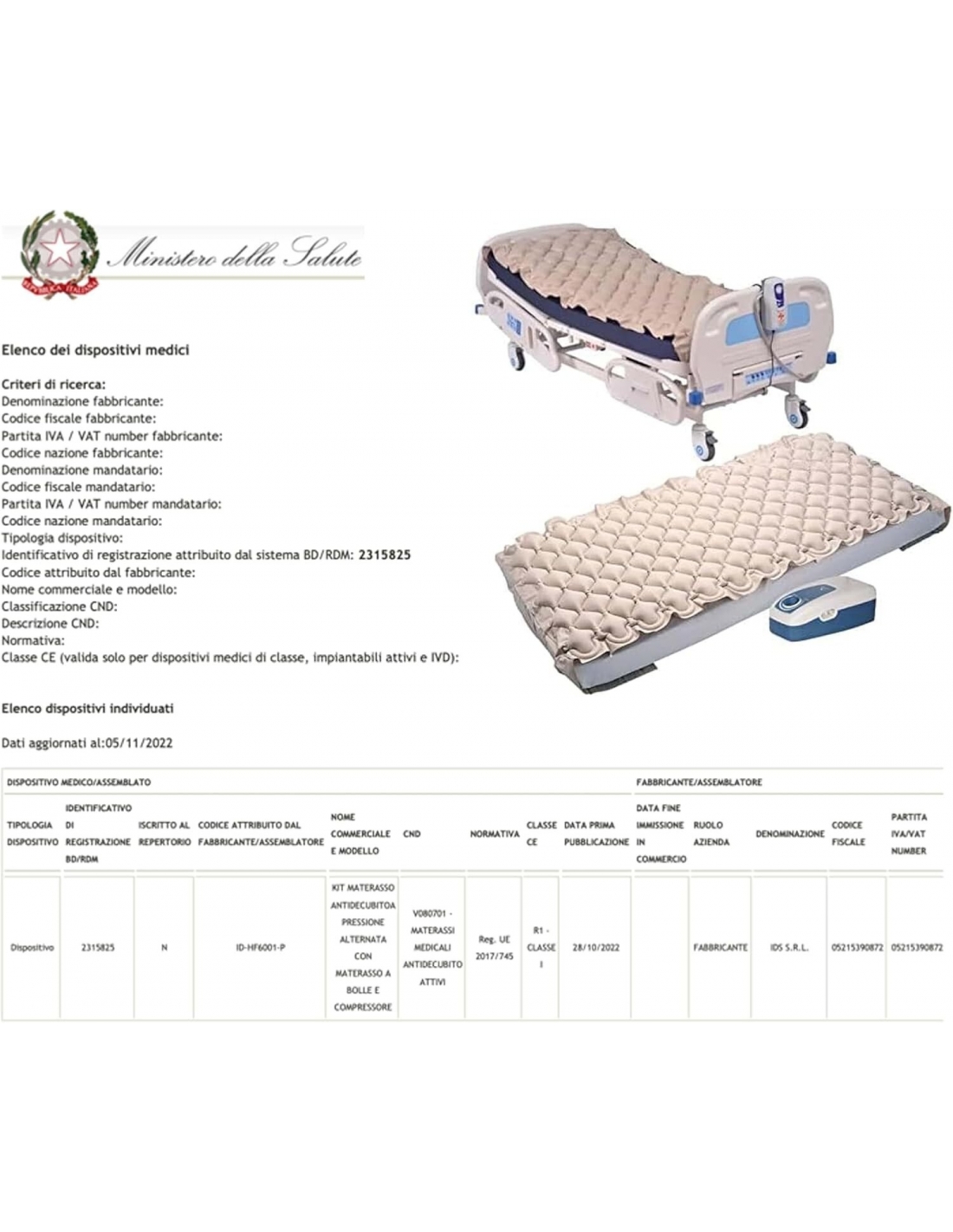 App Life Materasso Antidecubito bolle d'Aria Dispositivo Medico Classe I Ferite