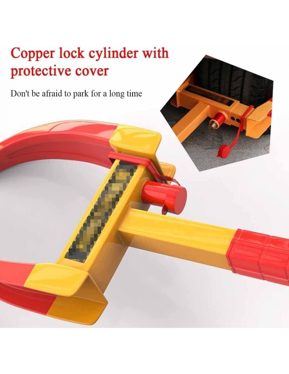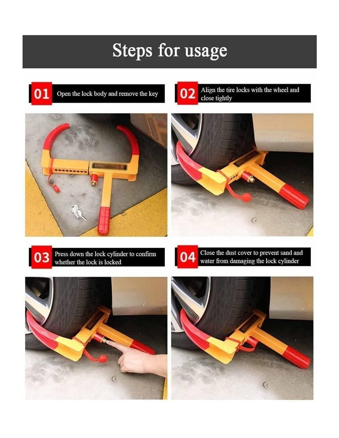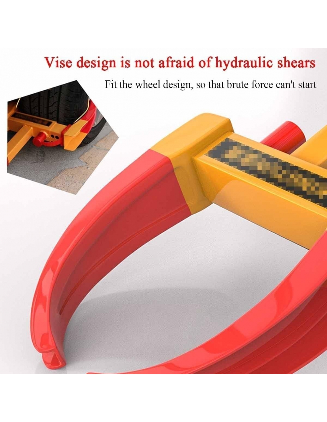 - Bloccandosi saldamente sulle ruote, questo collare for pneumatici aggiunge efficacemente un'immobilità travolgente alla tua automobile. In altre parole, nessun ladro potrà mai mettere le mani sulla tua proprietà.