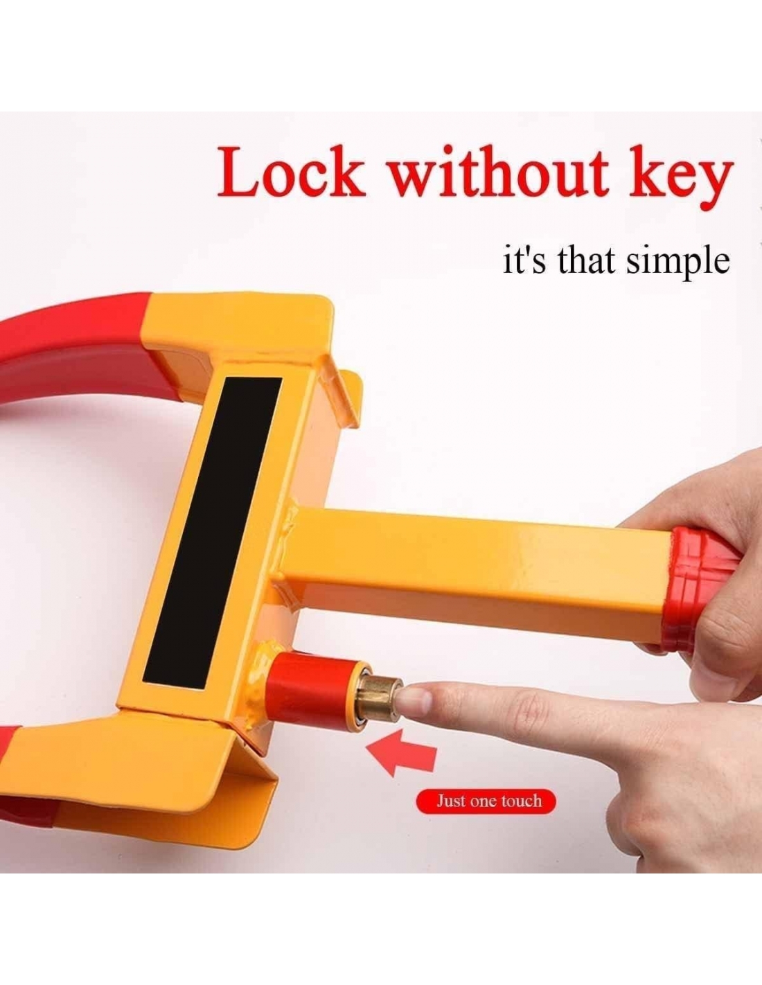 - Con un robusto telaio in acciaio, questo lucchetto for pneumatici è costruito for garantire affidabilità, durata ed efficienza di lunga durata. Inoltre, il morsetto for pneumatici è avvolto in un guscio in PVC for garantire che i pneumatici dell'auto non lascino graffi o segni durante l'uso.