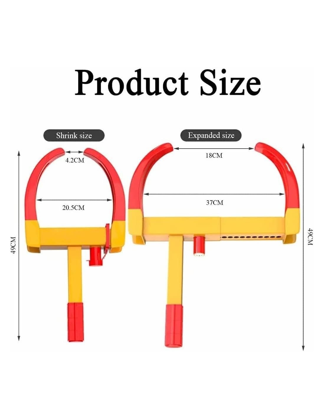 - 🚗 Adatto a tutti i veicoli: questo lucchetto per ruote offre una vestibilità universale per auto, SUV e camion. Ha un design solido che lo rende facile da trasportare durante il viaggio. È un accessorio per auto indispensabile per proteggere la tua auto