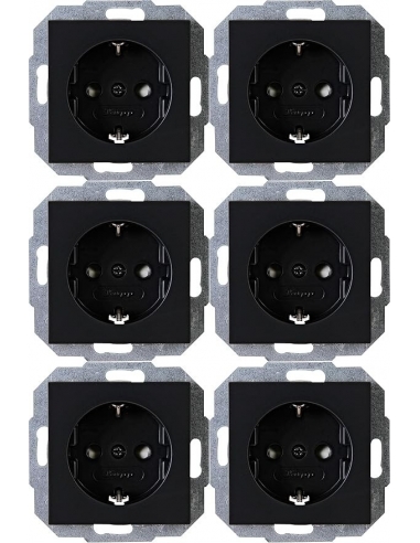 Kopp Athenis 943050058 - Frutti Elettrici, Confezione professionale, 6 prese con protezione da contatto, 16 A, 250 V, IP20, nero, superficie opaca