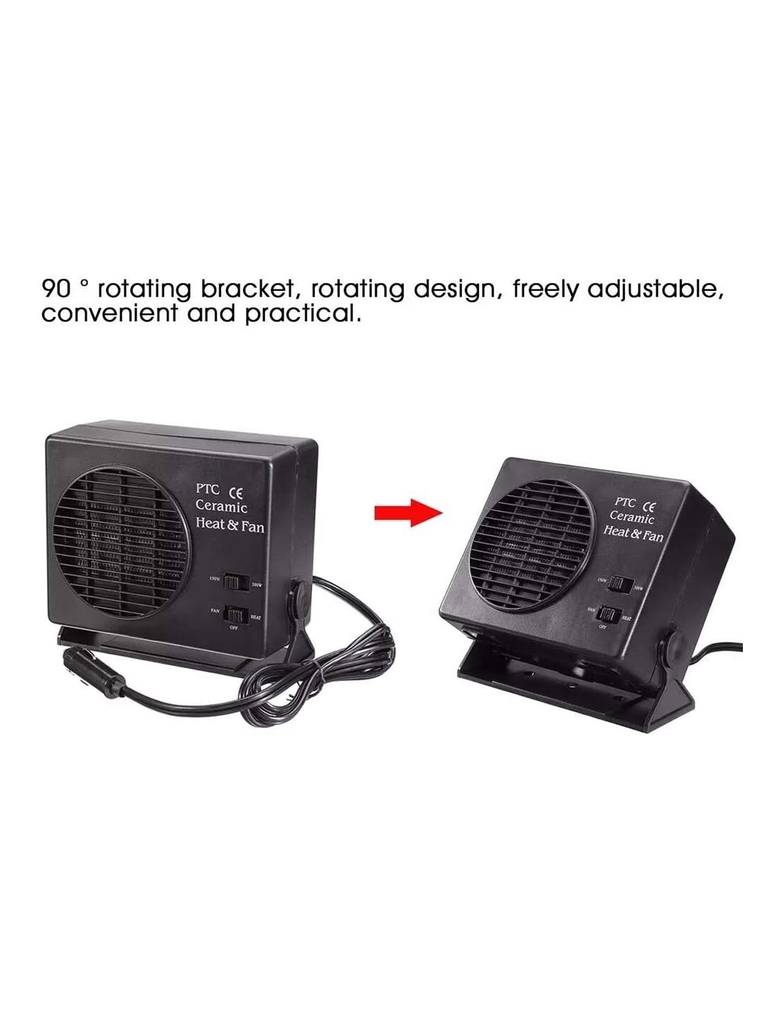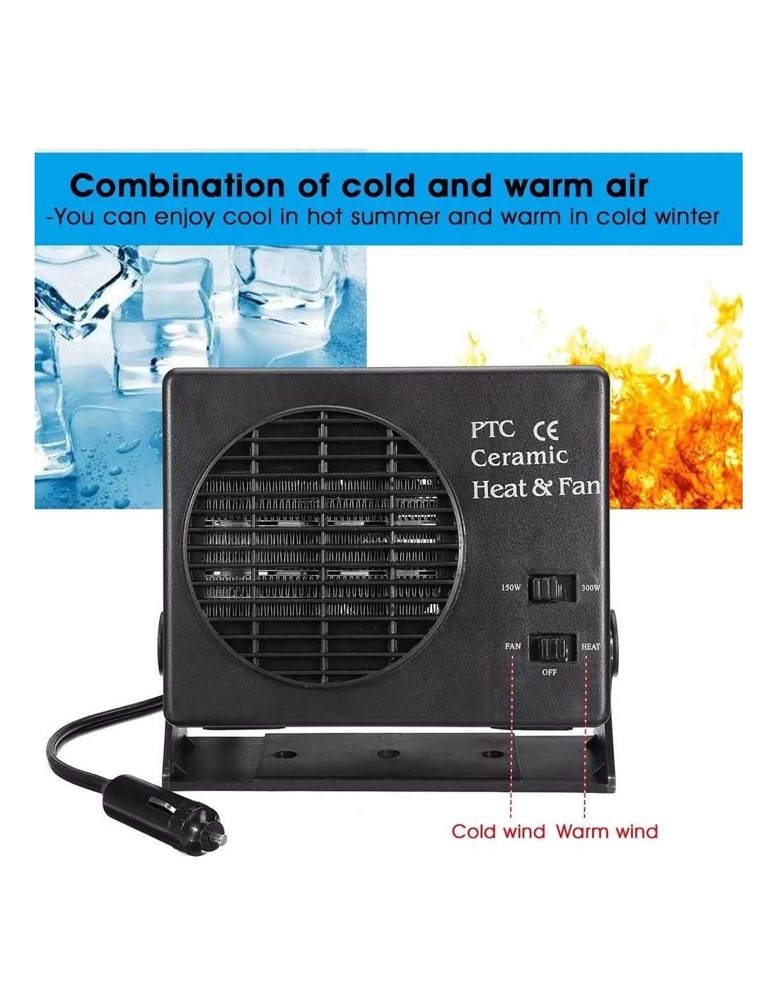 - 2 in 1 auto ventilatore riscaldamento: 12V 150W / 300W portatile auto riscaldamento sbrinatore può riscaldare o raffreddare. È possibile utilizzare la modalità di aria calda per riscaldare rapidamente l'interno della vettura in inverno, e rapidamente rimuovere nebbia o gelo sul parabrezza nella stagione fredda. È possibile utilizzare la modalità di aria fredda in estate in modo che non si deve tollerare l'aria calda in macchina e rendere la vettura più ventilato.