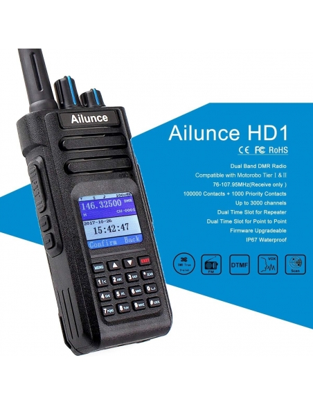 Retevis Ailunce HD1 10W DMR Radio Amatoriale, Dual Band, Bidirezionale
