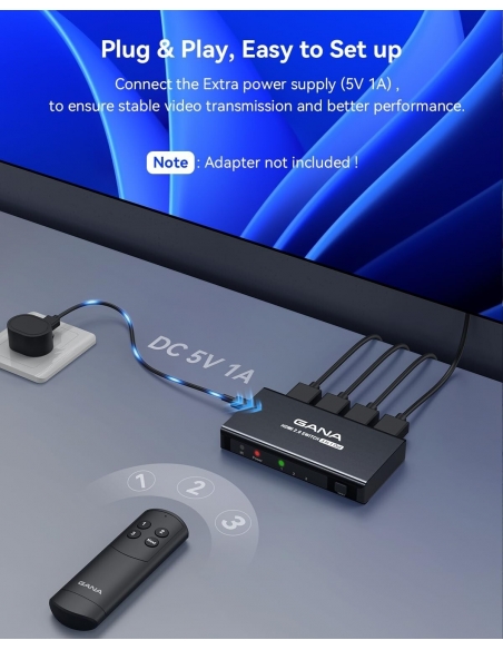 GANA - Router HDMI 3 in 1 out 4K a 60 Hz, GANA HDMI Splitter Switcher