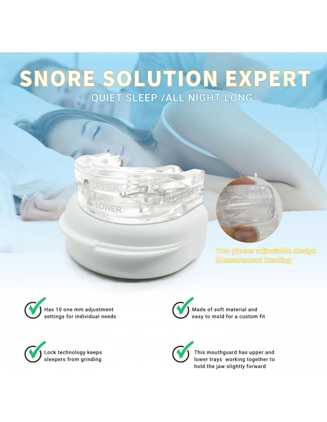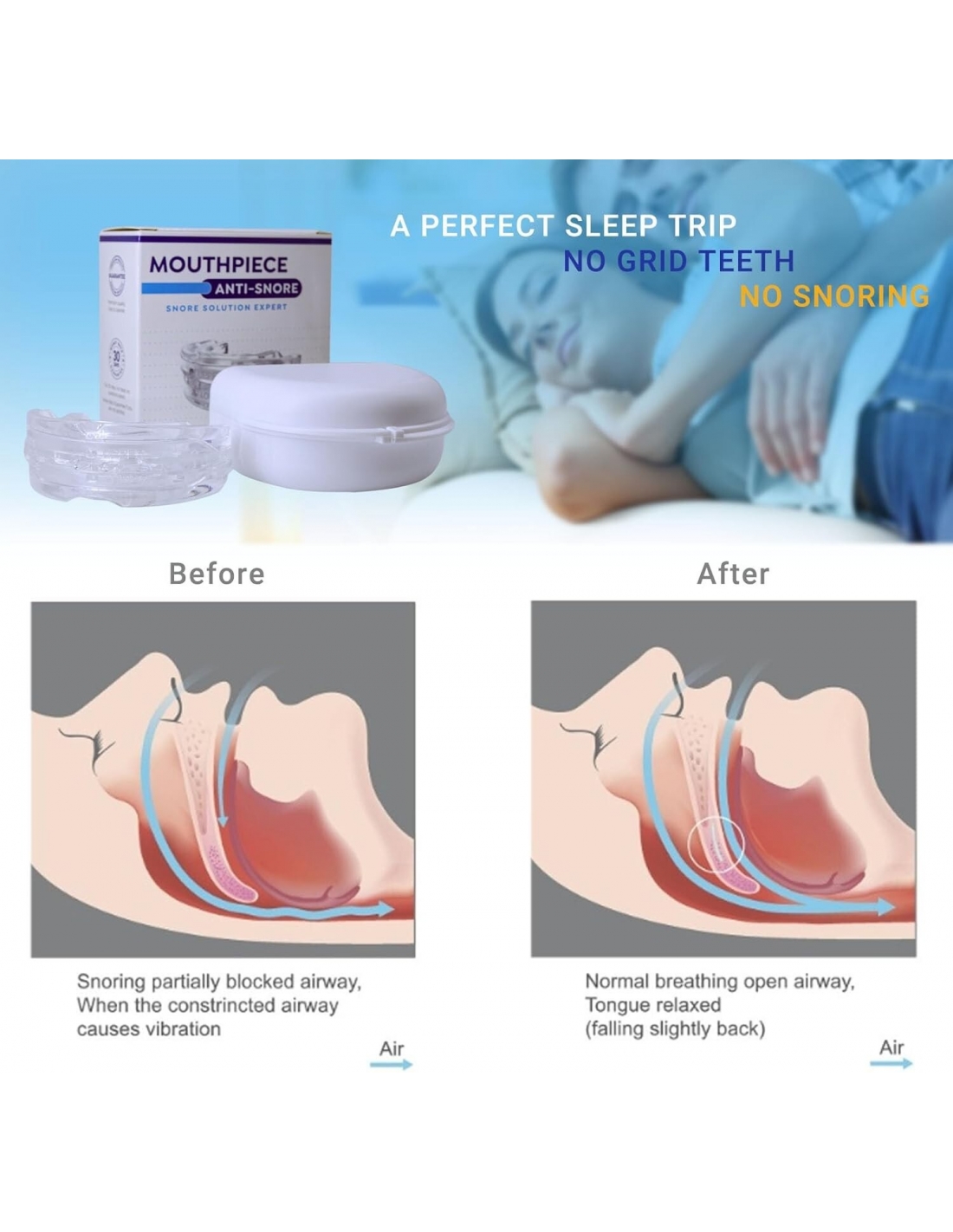 - PROTEZIONE DEI DENTI: Favorisce una respirazione più fluida, riduce il rumore del digrignare dei denti durante la notte e migliora la qualità del sonno. Goditi una notte di sonno confortevole e sii pronto ad abbracciare un nuovo giorno in qualsiasi momento.