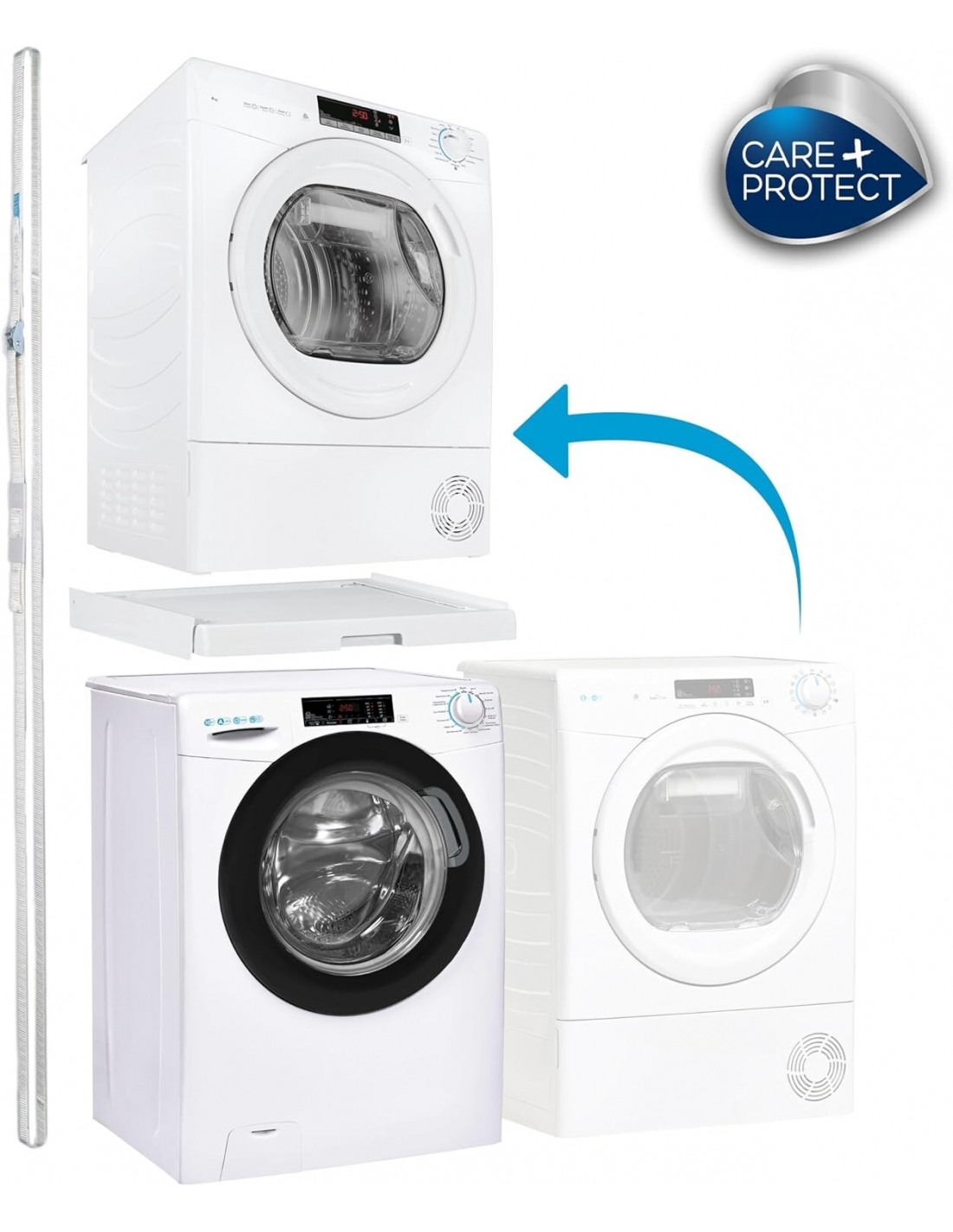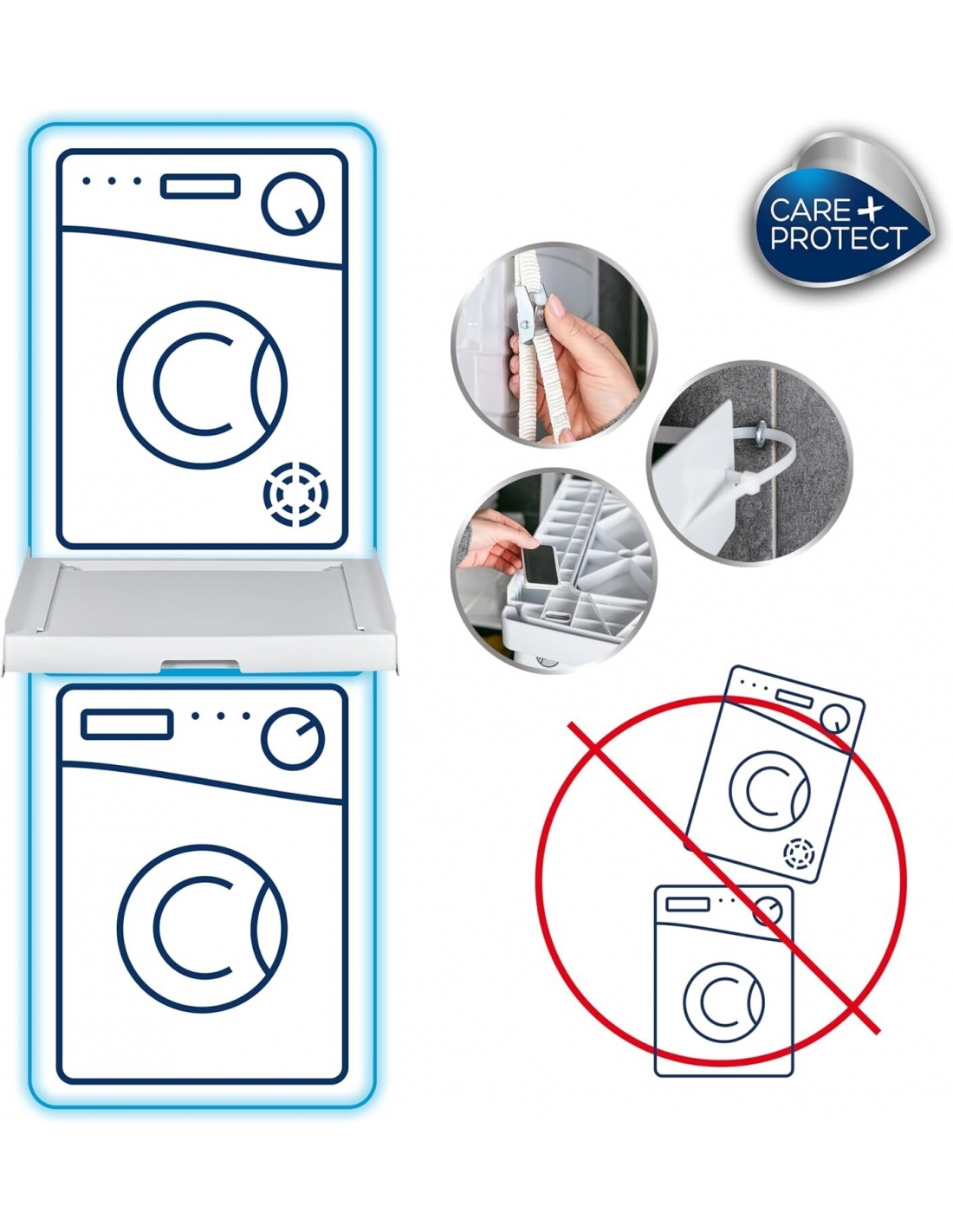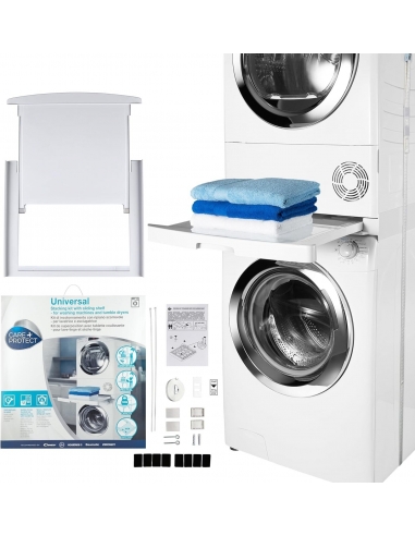 - SOLUZIONE SALVASPAZIO: Il kit di incolonnamento CARE+ PROTECT per lavatrici e asciugatrici è la soluzione ottima per impilare l'asciugatrice sulla lavatrice, liberando spazio in casa e creando un pratico angolo lavanderia anche in piccoli appartamenti; Ti consente di posizionare in sicurezza l'asciugatrice sopra la lavatrice senza praticare fori