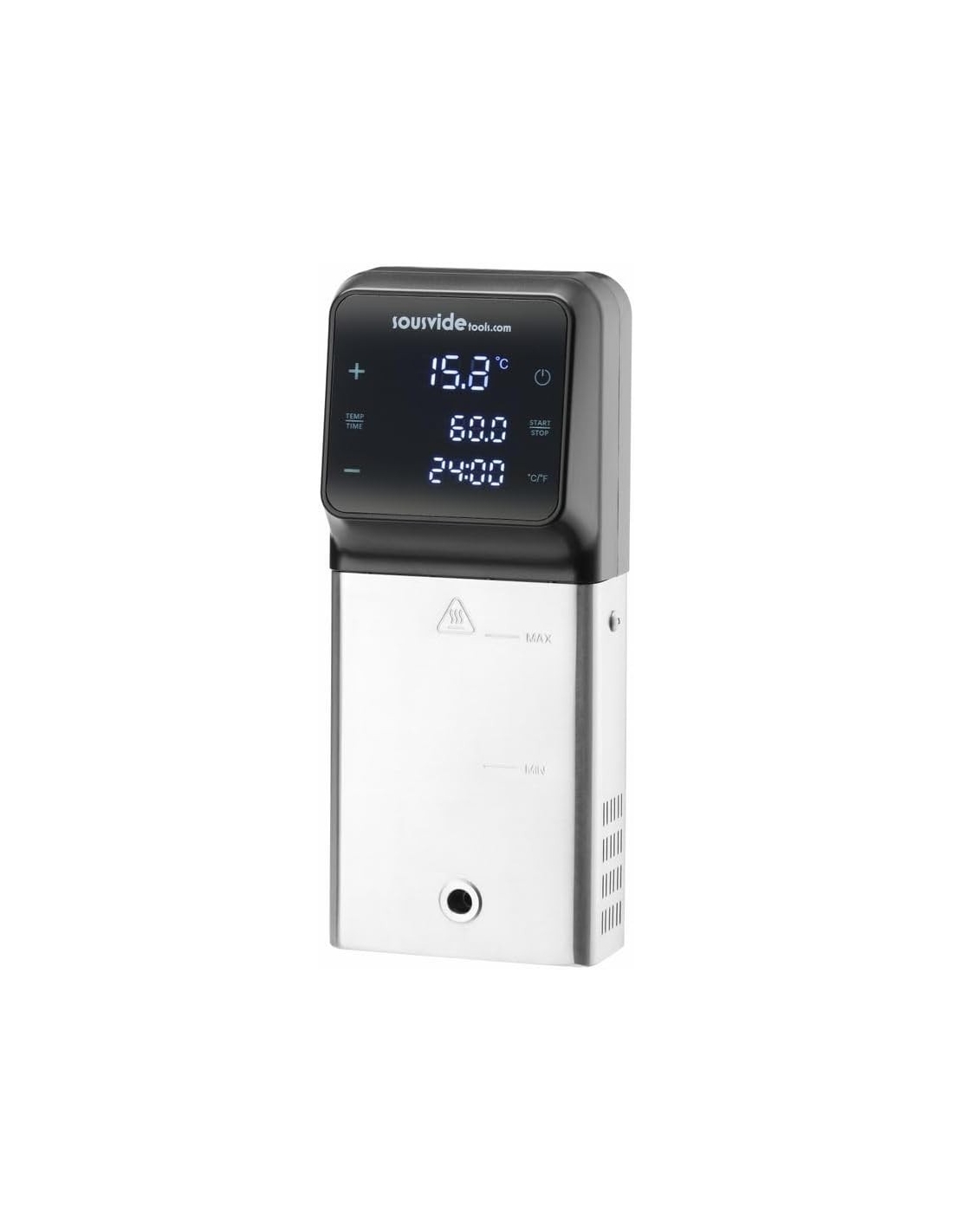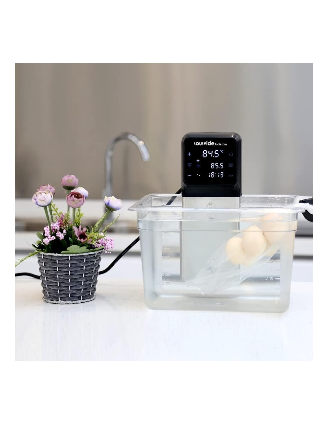 Migliore resa fino a 45 litri. Intervallo di temperatura 5 °C a 99 °C, precisione 0,07 °C. Il timer può essere programmato da 1 minuto a 99 ore. Con connessione Wi-Fi, può essere controllato dall'applicazione SousVideTools.