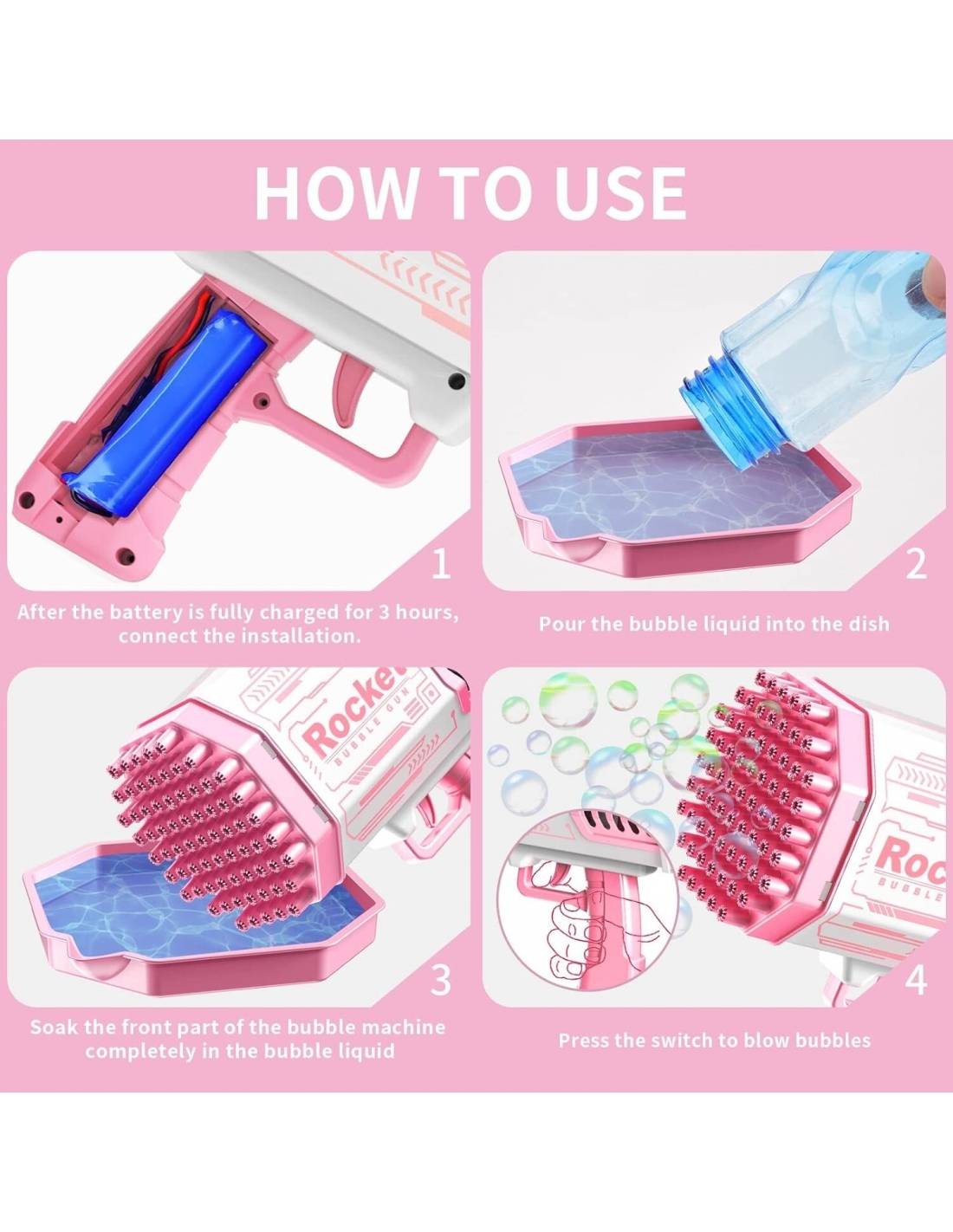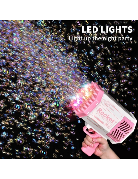 Bubble Gun - Mitragliatrice a bolle di bazooka a razzo a 69 fori con luci colora