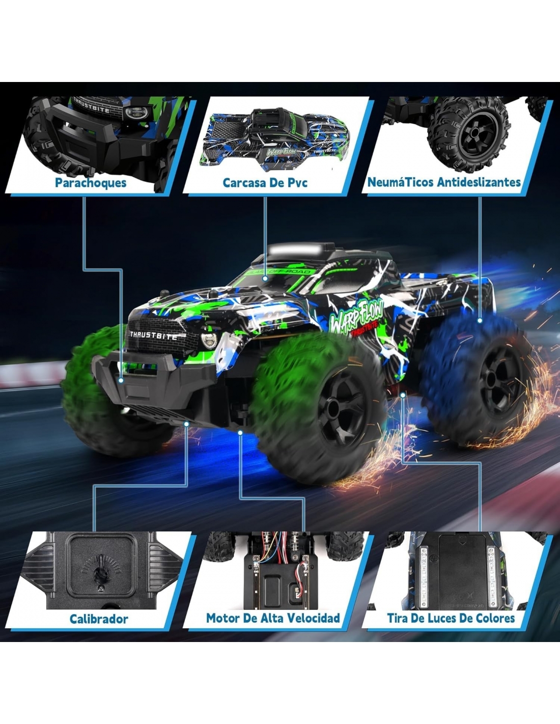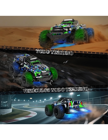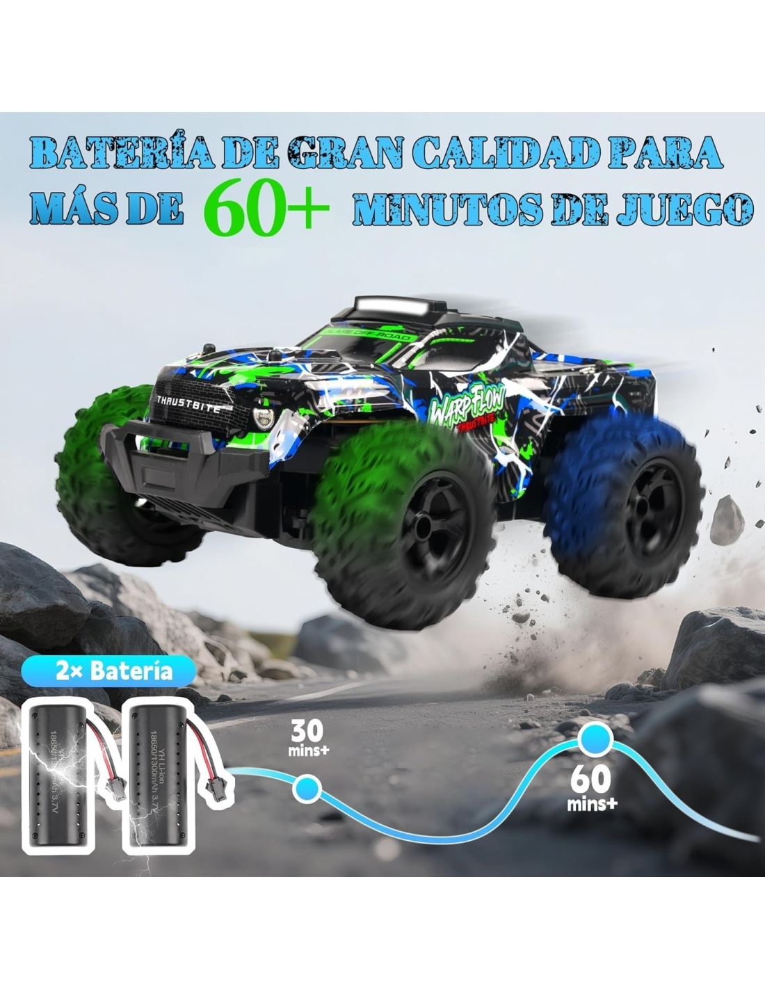 - Long Play All Terrains: alimentato da due batterie ricaricabili da 3,7 V 1200 mAh, che offrono 60 minuti di gioco. Il sistema di ricarica rapida USB da 150 minuti garantisce tempi di inattività minimi. Gli pneumatici in gomma TPR offrono una trazione superiore, consentendo una navigazione fluida su sabbia, erba, fango, rocce e altro ancora. Goditi un controllo reattivo e preciso, consentendo all'auto radiocomandata di manovrare abilmente attraverso gli ostacoli