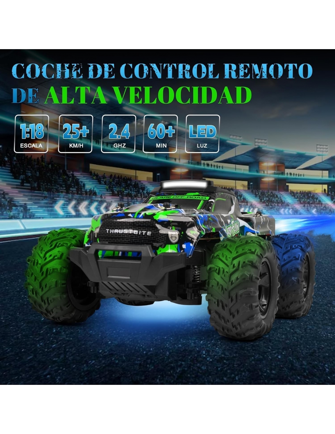 JOYTREKY 2023 Macchina Telecomandata - 1:18 Alta velocità LED Light 25KMH Auto RC con Spray 2.4GHz AllTerrain Off-Road Truck Giocattoli 2 Batterie ricaricabili 60 Minuti Giocattolo da Corsa Veloce - Verde