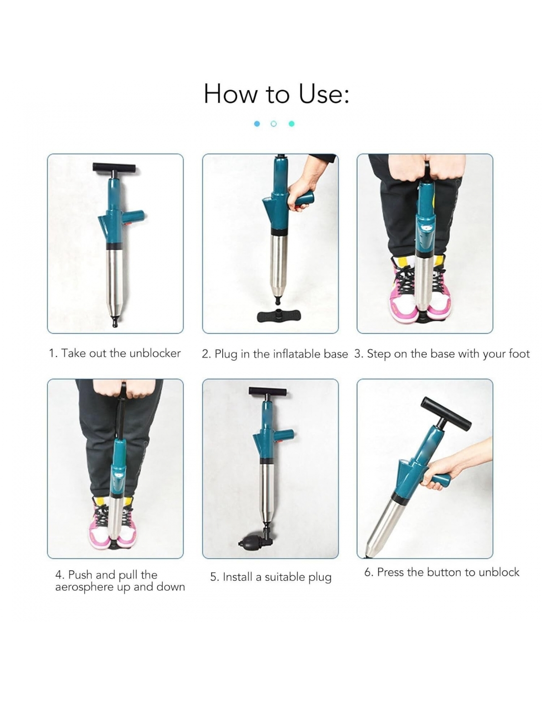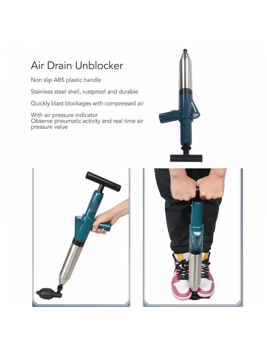 Pistola ad aria compressa, per scarichi wc, lavandini, multiuso