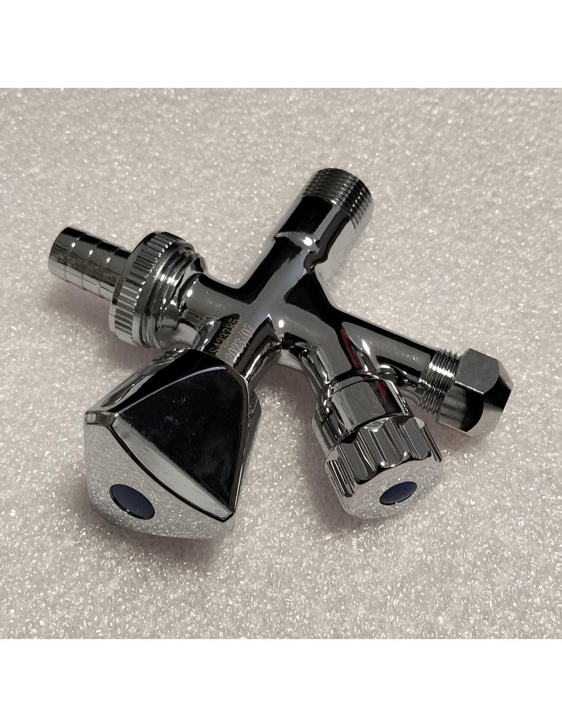 Equation A-30 Doppio rubinetto arresto ottone cromato M G3/4" M G1/2" D 10 mm