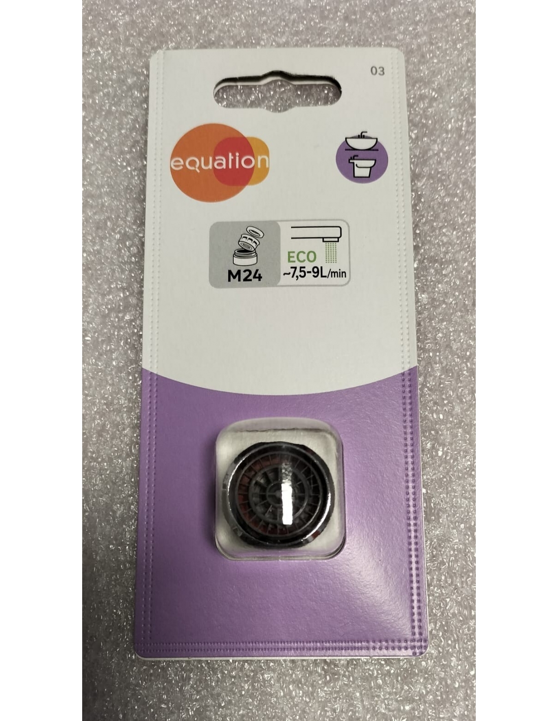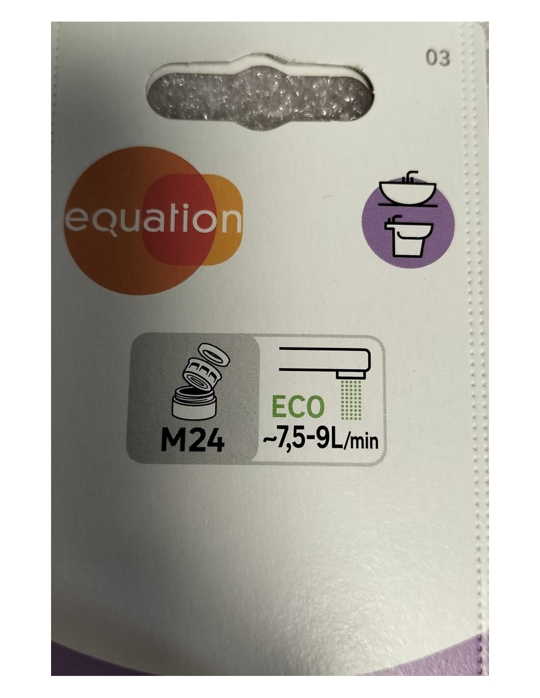 Aeratore acqua adatto per rubinetto lavabo Equation realizzato in plastica e ottone con finitura cromata. Una volta installato, mescolerà l'acqua con l'aria senza perdere la sensazione di flusso o comfort per ottenere un maggiore risparmio. Ha una filettatura maschio di 24 mm di diametro. Questo prodotto è un Ecopción della categoria Risparmio idrico che include quei prodotti di Leroy Merlin che riducono il consumo di acqua del 60% o più rispetto ai prodotti standard o rispetto al suo non utilizzo.