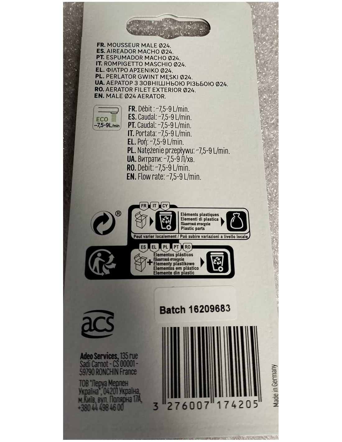 Equation M24 Rompigetto Maschio Diametro 24mm Aeratore Lavabo Rubinetto PZ.5