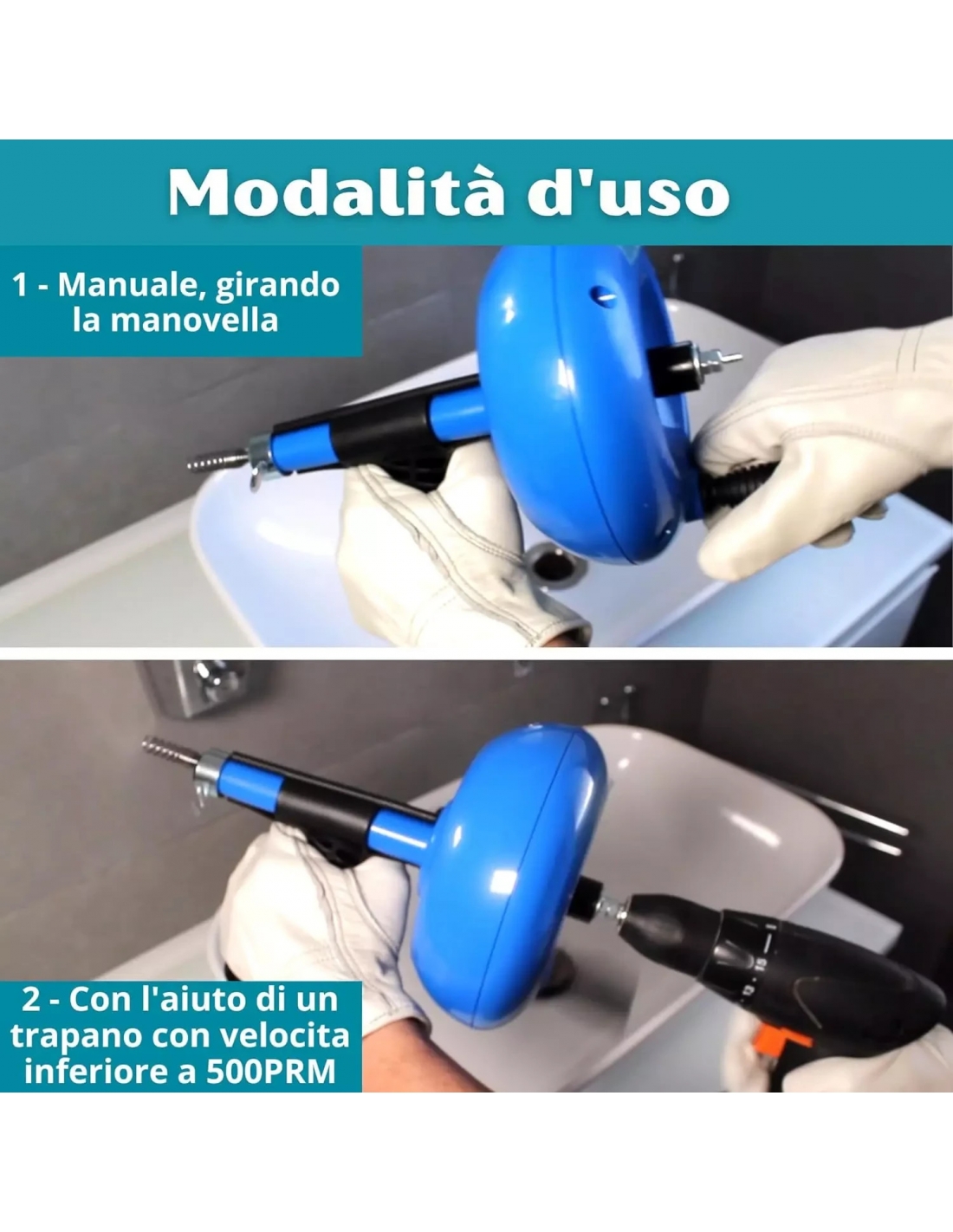 Torque Sonda Sturatubi Con Attacco a Trapano 7.6M, Stura Lavandini E Scarichi