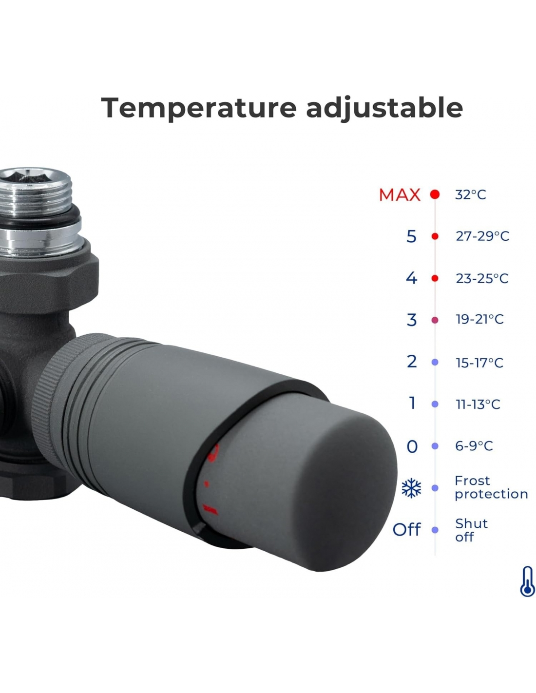Vancoco Valvola Radiatore Angolare con Blocco H da 50 mm Universale Valvola Radiatore Con Testa Termostatica Valvola per Termosifone Antracite