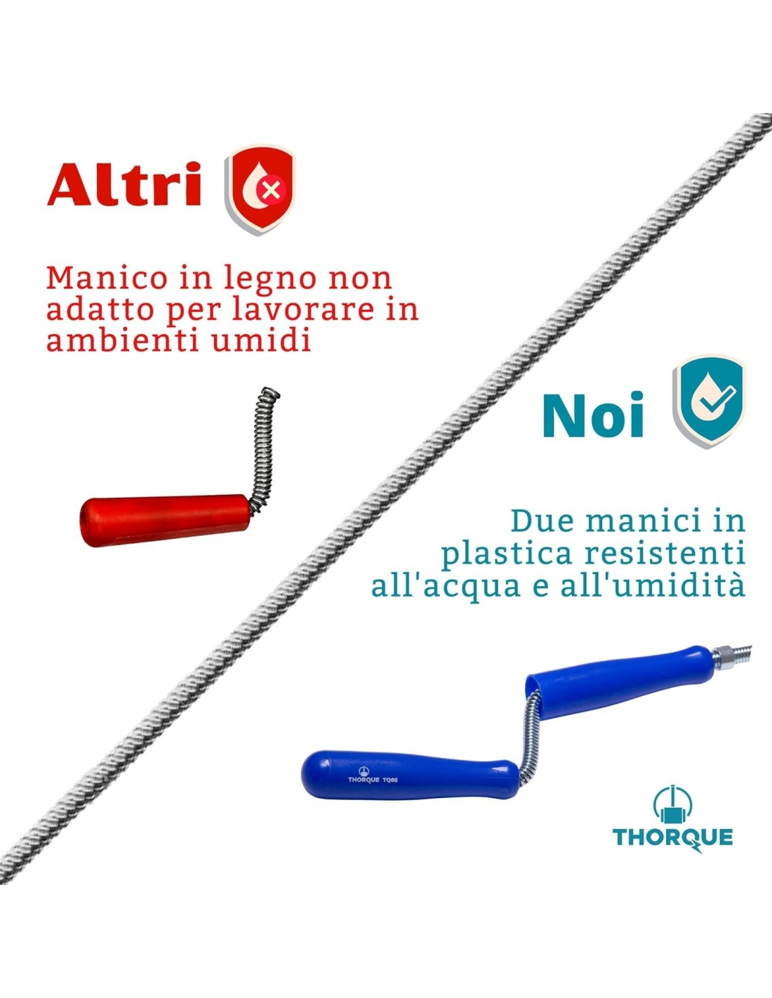- 🚿 [CONSIGLIATO PER] La sonda sturatubi 5 M THORQUE, grazie all'estremità dotata di artiglio, è consigliata per liberare gli scarichi di bagni e cucine da ostruzioni solide. Consigliato per gli scarichi di bagno e cucina, è consigliato, grazie alla sua lunghezza, come sturafogne.