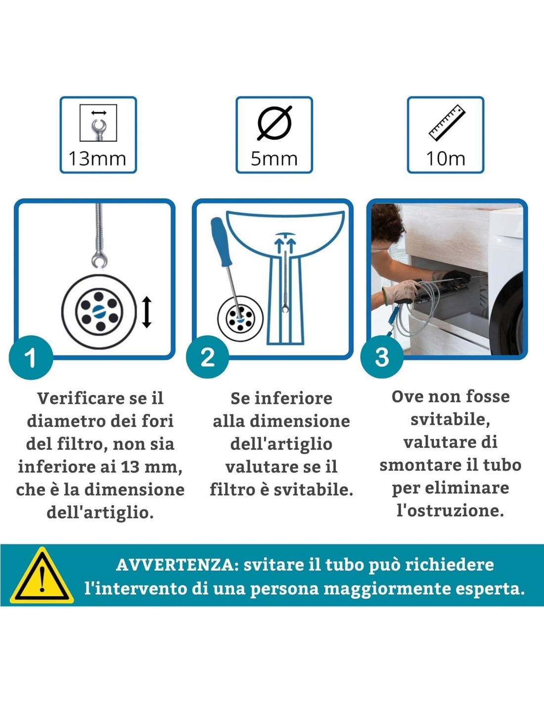 - 🔧 [MANUTENZIONE] Il cavo stura lavandini e scarichi lavandini e scarichi professionale può essere utilizzato non solo nel caso di ostruzioni ma anche a scopo manutentivo per i propri scarichi