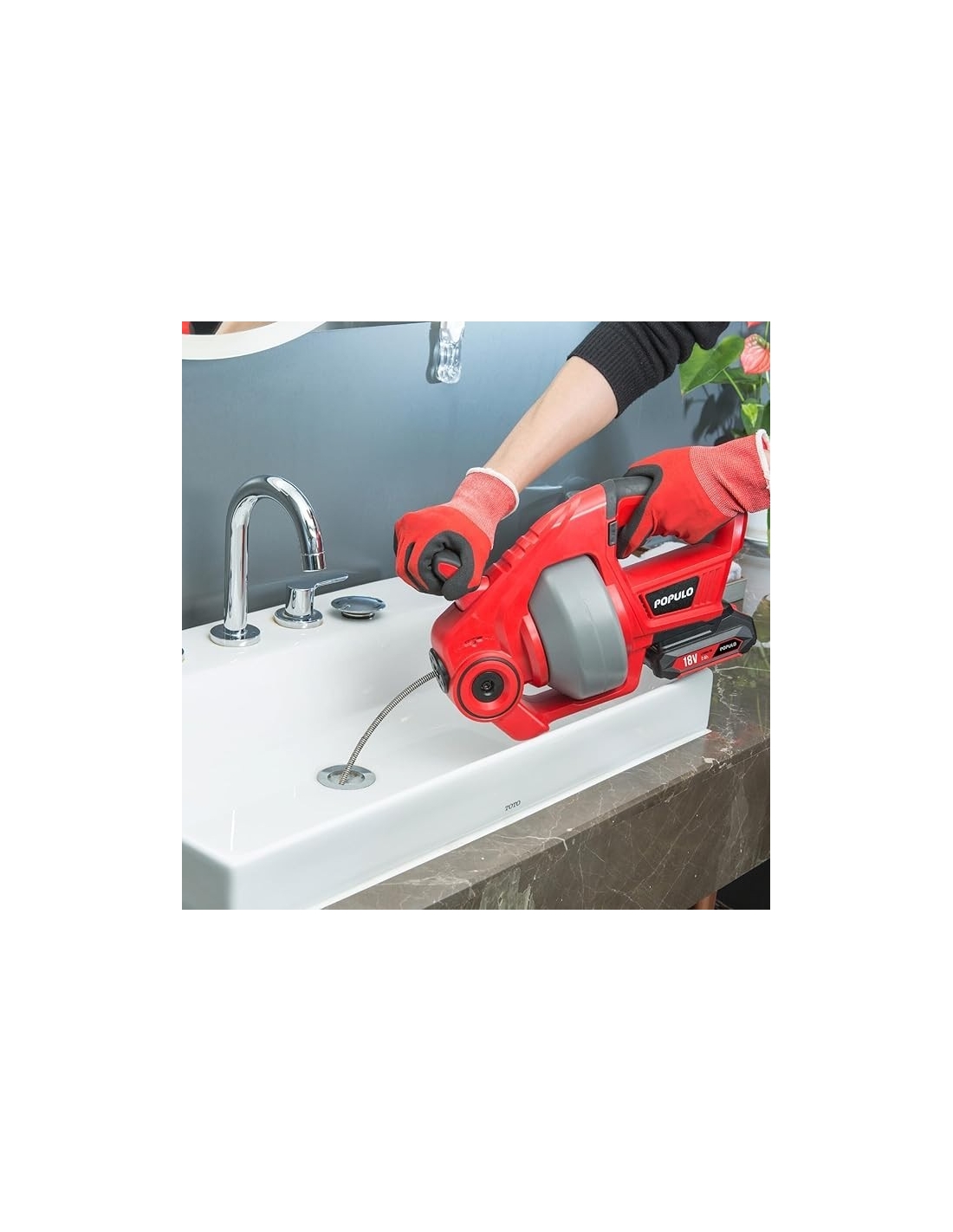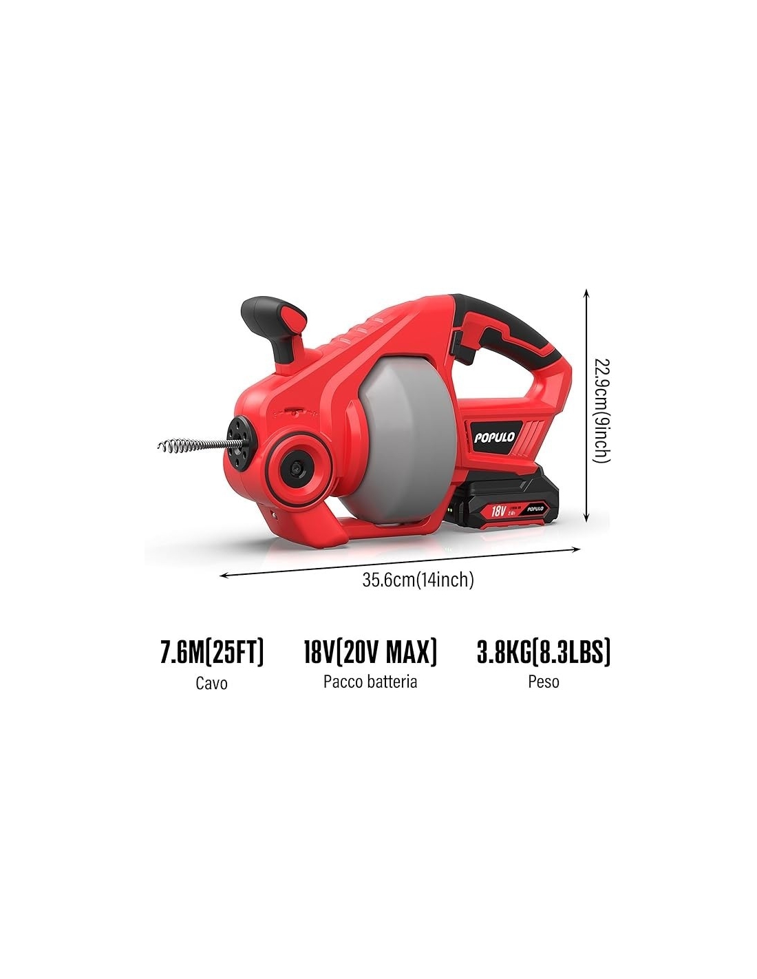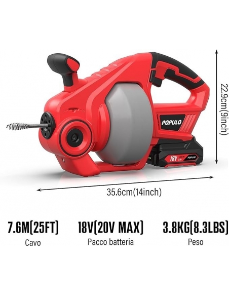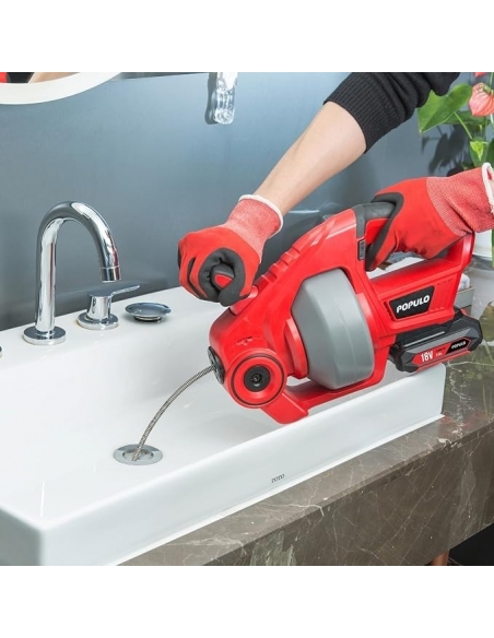 POPULO 18V(20V Max) Trivella di scarico elettrica, per scarico a serpente per impianti idraulici, Pulitore di scarico senza fili per WC, fogna, bagno