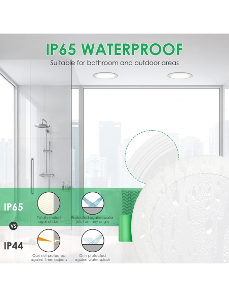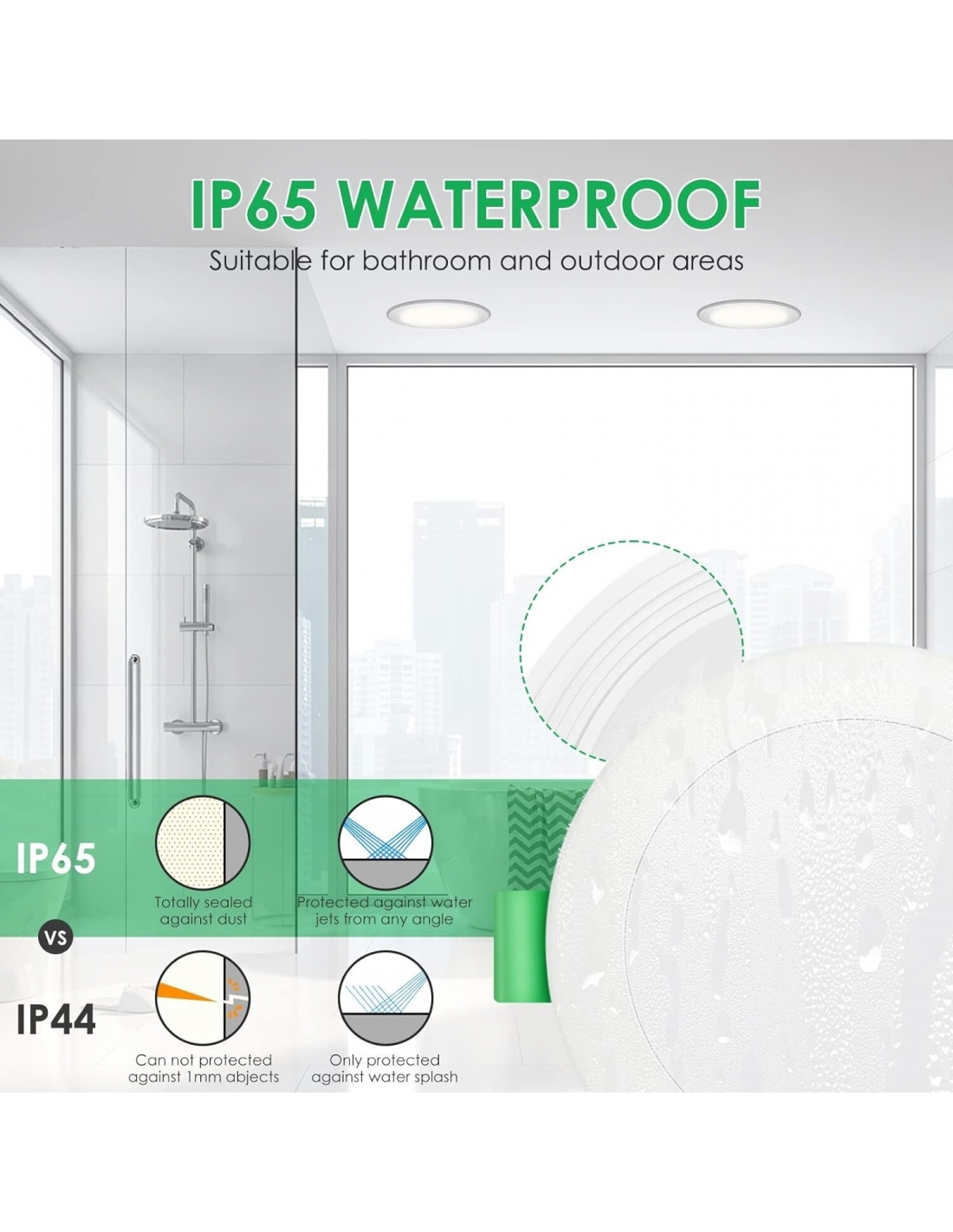 Downlight LED Faretti da soffitto per bagno IP65, i telai sono realizzati in materiale resistente al calore di alta qualità, che ha una buona dissipazione del calore, proprietà anticorrosione e antiossidanti. Le plafoniere da incasso a LED ALUSSO IP65 possono essere utilizzate in aree umide, soddisfano varie esigenze in applicazioni come soggiorno, bagno, camera da letto, cucina, ufficio, negozio e intradossi esterni.