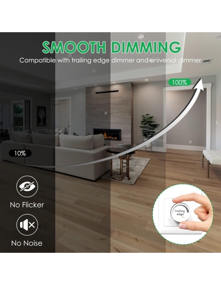 Plafoniere da incasso a LED dimmerabili, intervallo di attenuazione dal 10% al 100%, scegli una luminosità confortevole in base alle tue esigenze, crea un'atmosfera diversa per la tua stanza. Compatibile con la maggior parte dei dimmer trailing edge sul mercato, senza sfarfallio o rumore. Il dimmer non è compreso nella fornitura, i downlight LED ALUSSO a soffitto dimmerabili possono essere utilizzati anche a piena potenza senza dimmer.