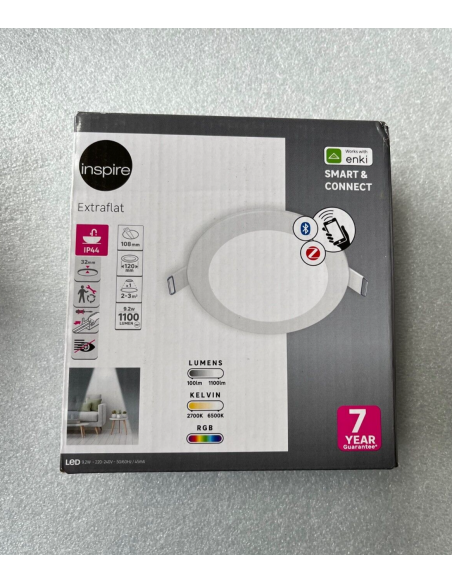Questo faretto LED INSPIRE di 12 cm di diametro può essere installato in tutti i tuoi soggiorni, compreso il bagno grazie al suo indice di protezione IP44. La sua forma rotonda e il suo colore bianco rendono questo faretto un elemento sobrio ed elegante che si integrerà facilmente nei tuoi spazi e si abbinerà ai tuoi diversi stili. La sua luce si adatta ai tuoi desideri e alle tue esigenze e offre 4 diversi tipi di illuminazione. Durante l'installazione, puoi scegliere la temperatura della luce che illuminerà i tuoi interni.Una volta installato, è possibile regolare l'intensità offerta dall'apparecchio, con utilizzo a piena potenza (100%) o ridotta della metà (50%).